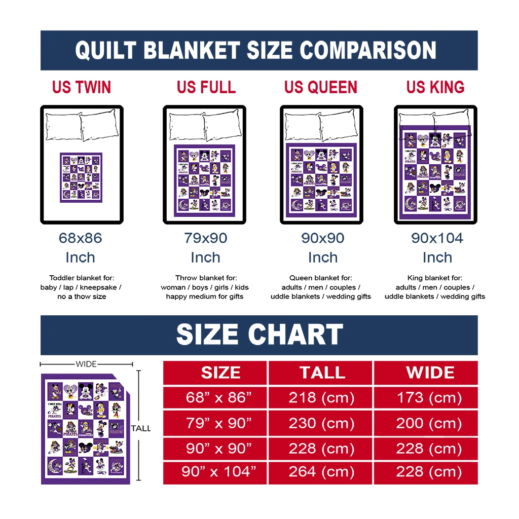 Wrap yourself in warmth and pride with the East Carolina Pirates Mickey Mouse Motif Purple White Quilt Blanket from the East Carolina Pirates Blankets collection at Yes That Blanket. Made from 100% premium quilting-weight polyester blended with a touch of microfiber, this quilt offers a smooth, soft finish you’ll love. Choose between two quilting styles—Stipple or Diagonal—and enjoy the comfort of a cotton-filled layer inside that adds extra coziness for every season. The border is available in classic black or white, giving your design a clean, timeless edge.
