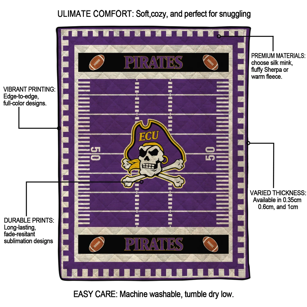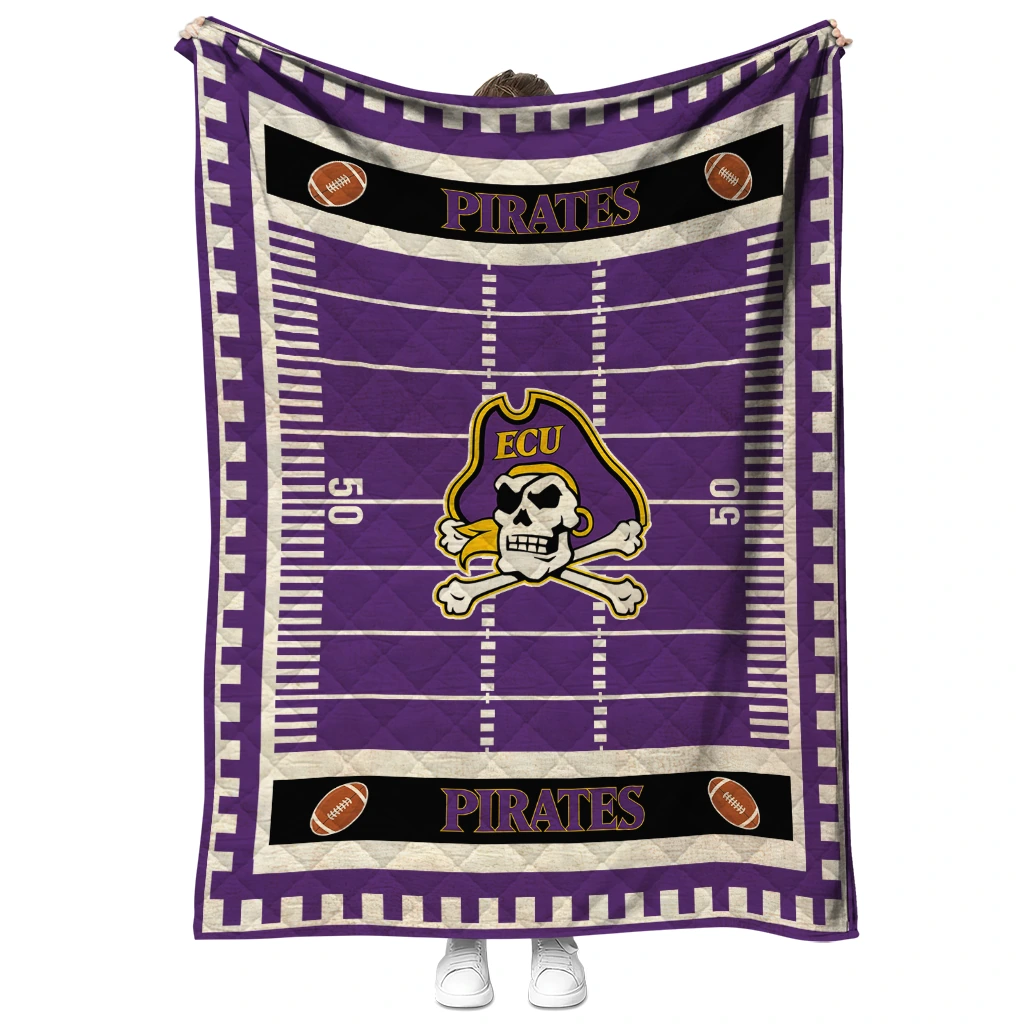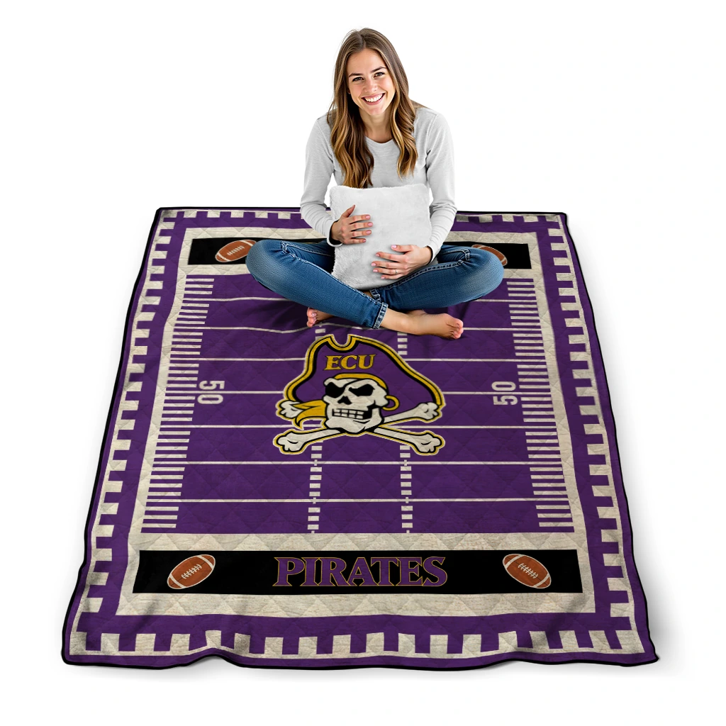 Wrap yourself in warmth and pride with the East Carolina Pirates Mickey Player Purple Quilt Blanket from the East Carolina Pirates Blankets collection at Yes That Blanket. Made from 100% premium quilting-weight polyester blended with a touch of microfiber, this quilt offers a smooth, soft finish you’ll love. Choose between two quilting styles—Stipple or Diagonal—and enjoy the comfort of a cotton-filled layer inside that adds extra coziness for every season. The border is available in classic black or white, giving your design a clean, timeless edge.