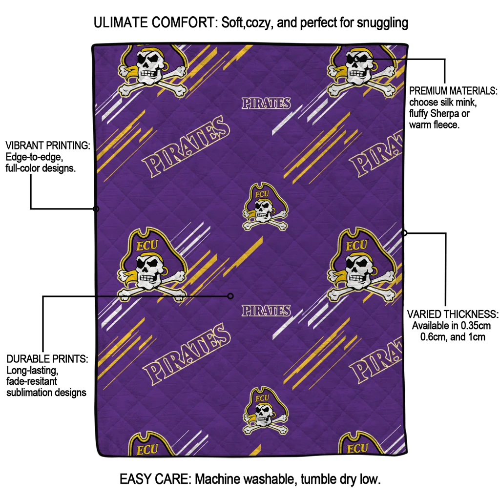 East Carolina Pirates Sketch Lines Purple Quilt Blanket