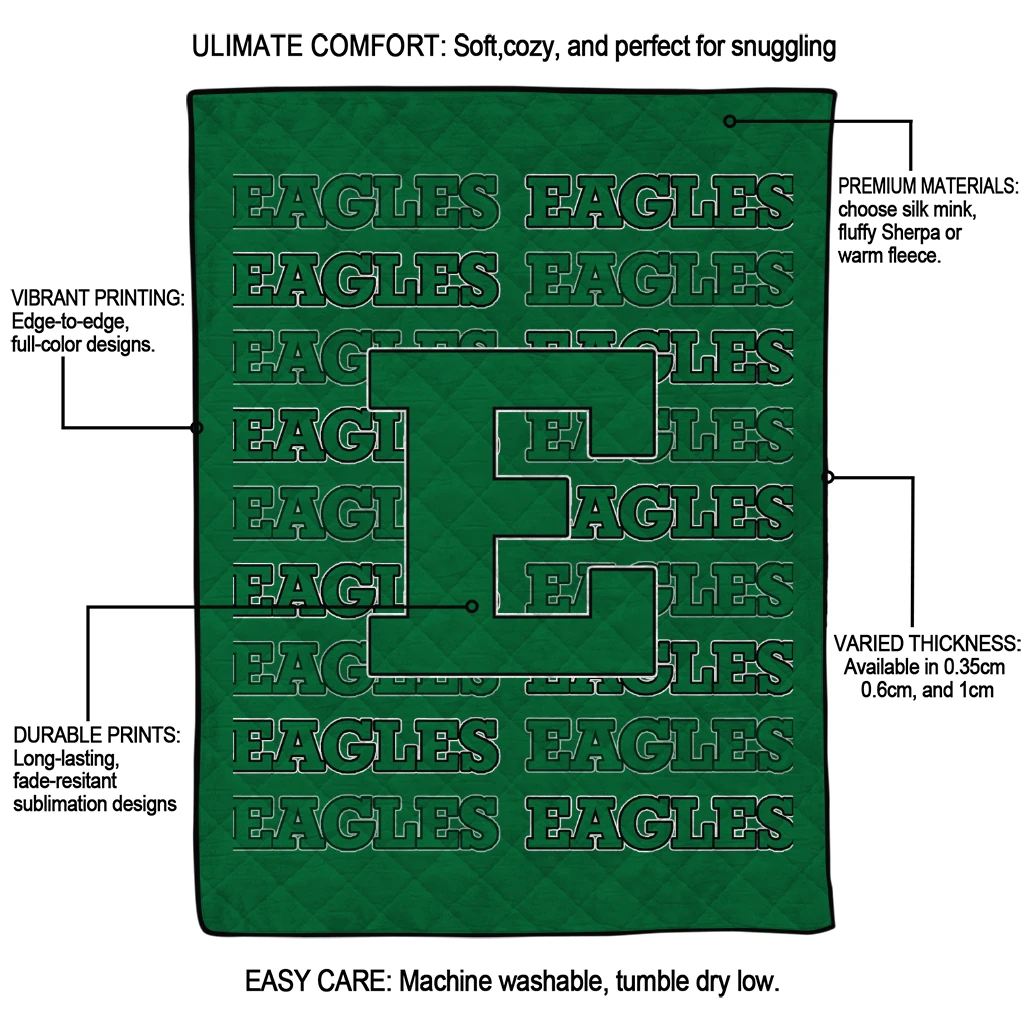 Wrap yourself in warmth and pride with the Eastern Michigan Eagles Bold Red Green Quilt Blanket from the Eastern Michigan Eagles Blankets collection at Yes That Blanket. Made from 100% premium quilting-weight polyester blended with a touch of microfiber, this quilt offers a smooth, soft finish you’ll love. Choose between two quilting styles—Stipple or Diagonal—and enjoy the comfort of a cotton-filled layer inside that adds extra coziness for every season. The border is available in classic black or white, giving your design a clean, timeless edge.