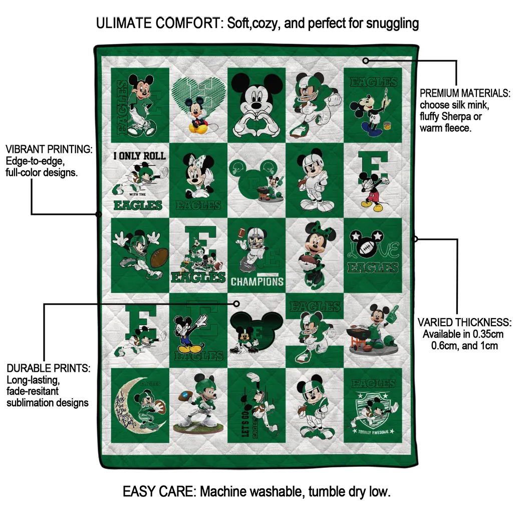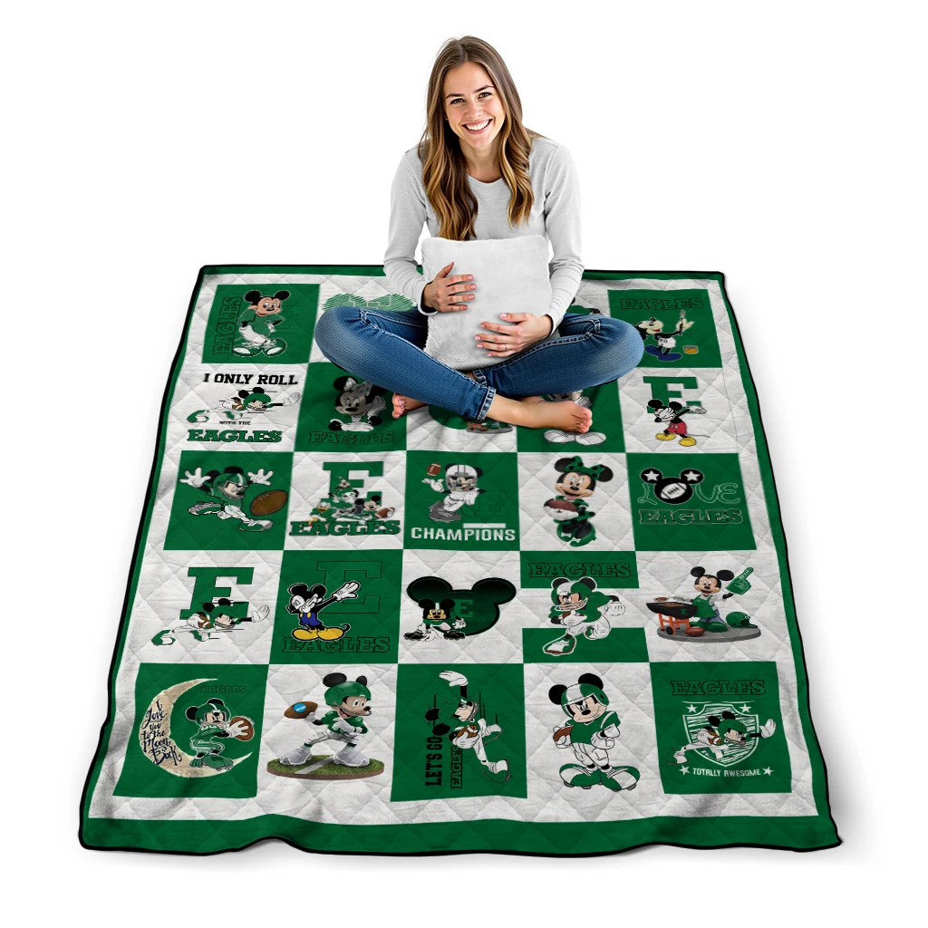 The Eastern Michigan Eagles Mickey Mouse Motif Green White Quilt Blanket is more than a blanket—it’s everyday comfort, thoughtfully made. Crafted from premium quilting fabric with a soft microfiber touch, it offers a smooth hand-feel and lasting coziness. Layered quilting with a cotton-filled core provides adaptable warmth across seasons while maintaining a clean, tailored look on your bed or sofa.