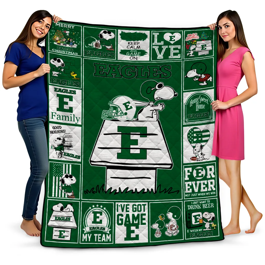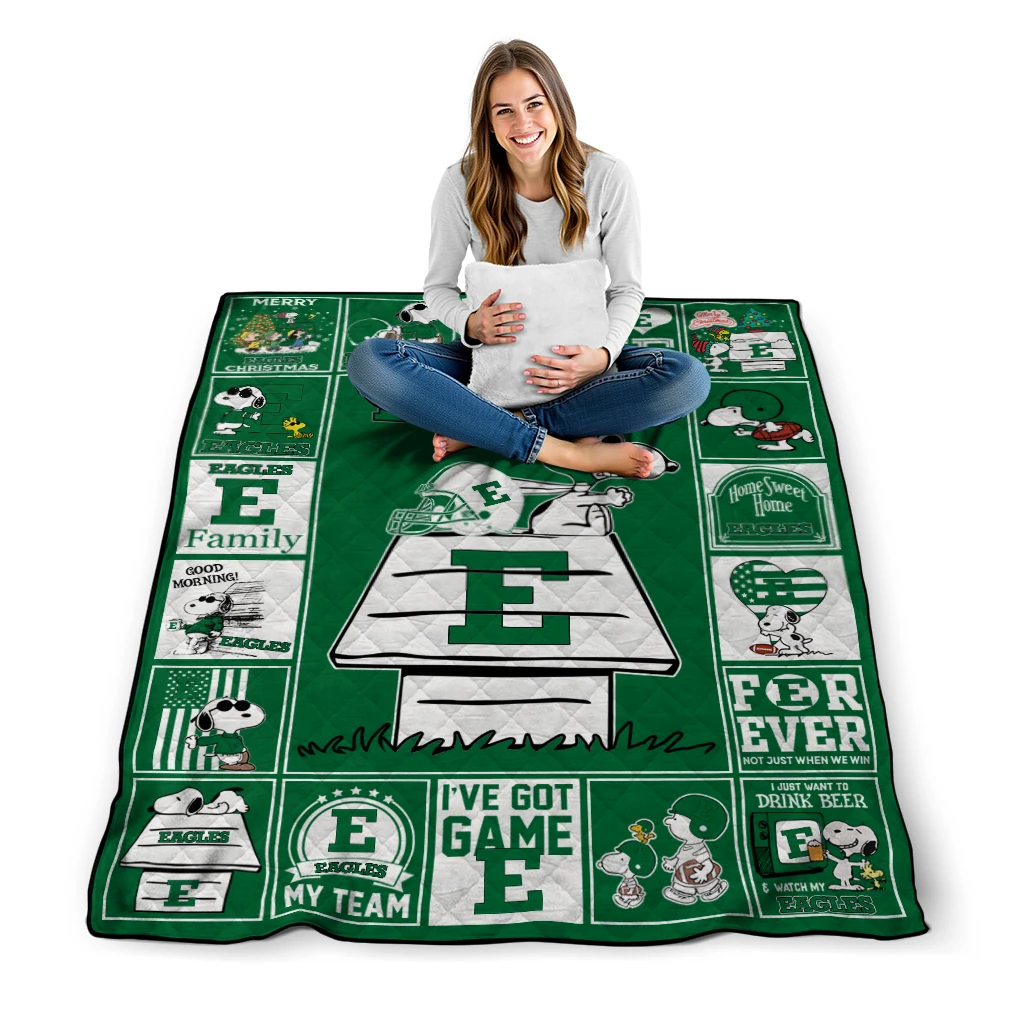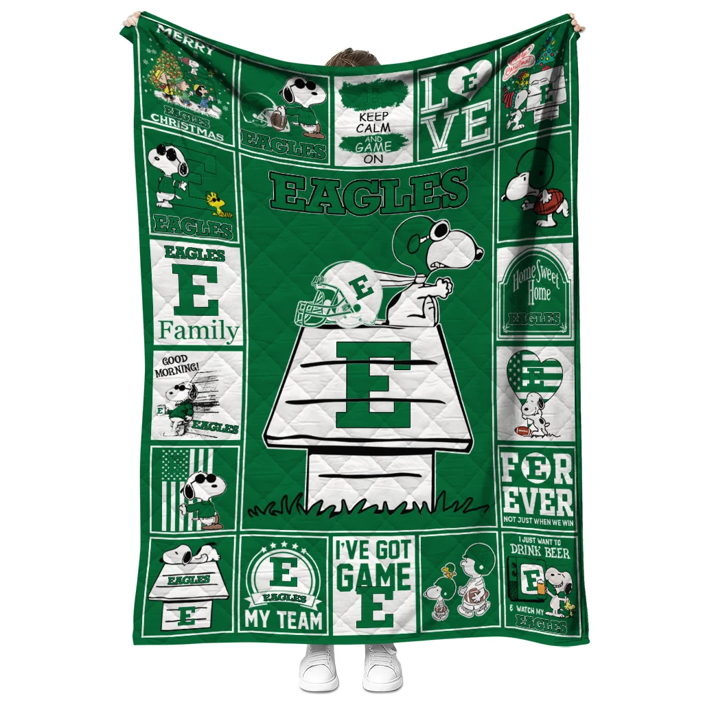 Eastern Michigan Eagles Snoopy Love Green Quilt Blanket