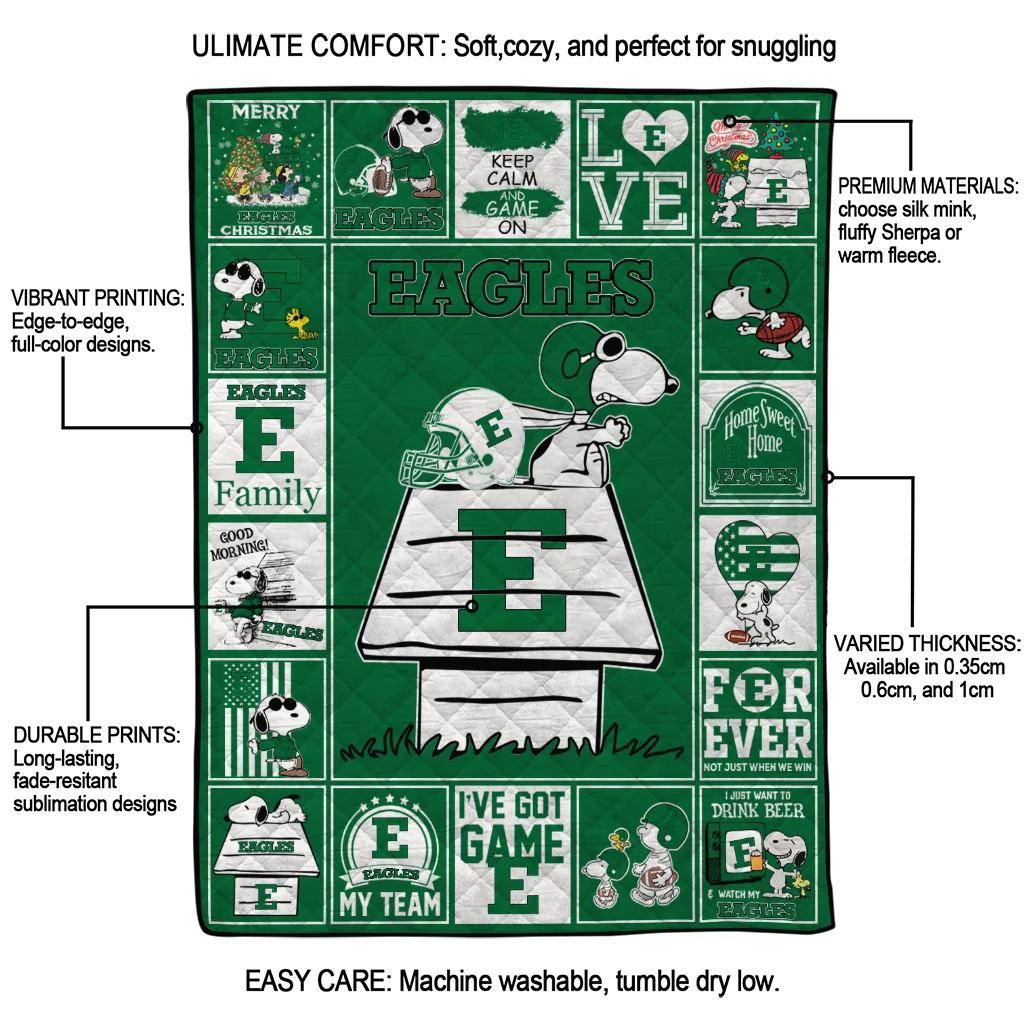 Be the first to review “Eastern Michigan Eagles Snoopy Love Green Quilt Blanket”