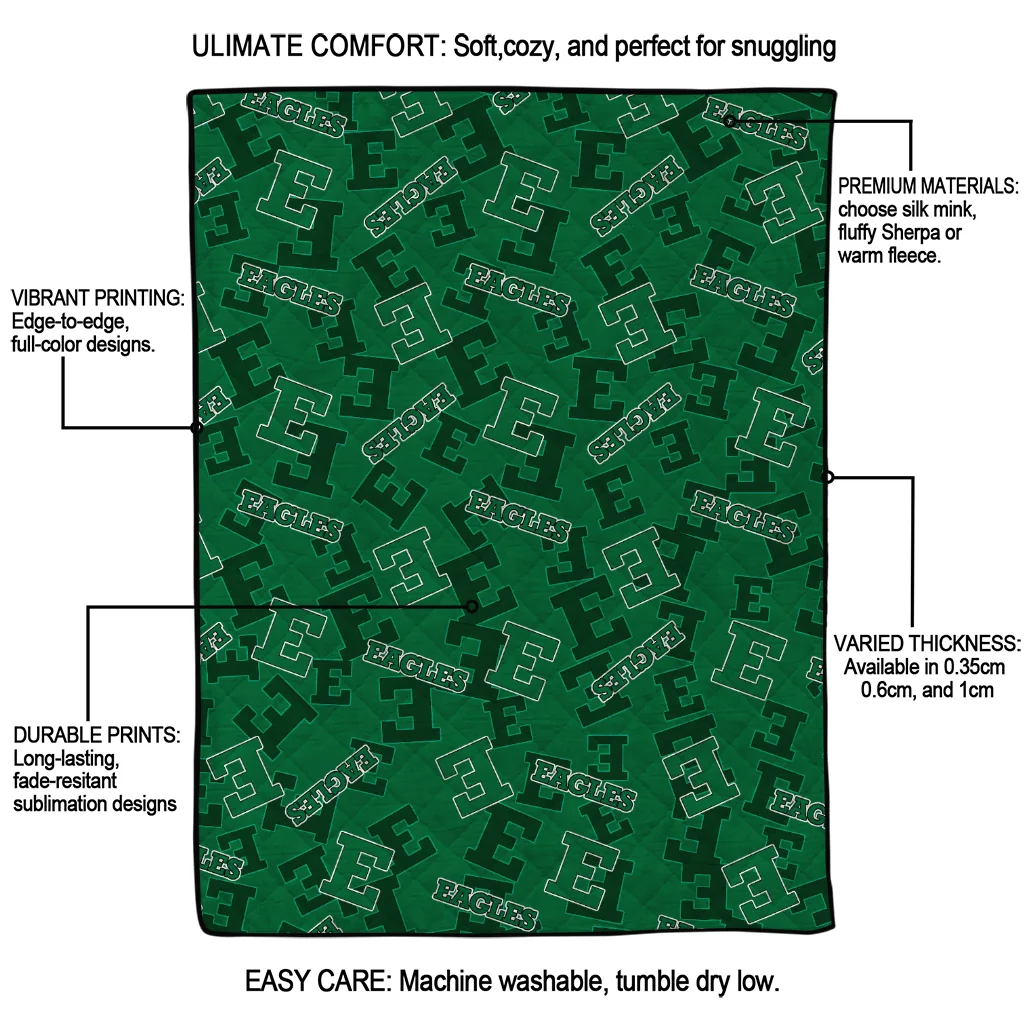 Wrap yourself in warmth and pride with the Eastern Michigan Eagles Solid Classic Green Quilt Blanket from the Eastern Michigan Eagles Blankets collection at Yes That Blanket. Made from 100% premium quilting-weight polyester blended with a touch of microfiber, this quilt offers a smooth, soft finish you’ll love. Choose between two quilting styles—Stipple or Diagonal—and enjoy the comfort of a cotton-filled layer inside that adds extra coziness for every season. The border is available in classic black or white, giving your design a clean, timeless edge.