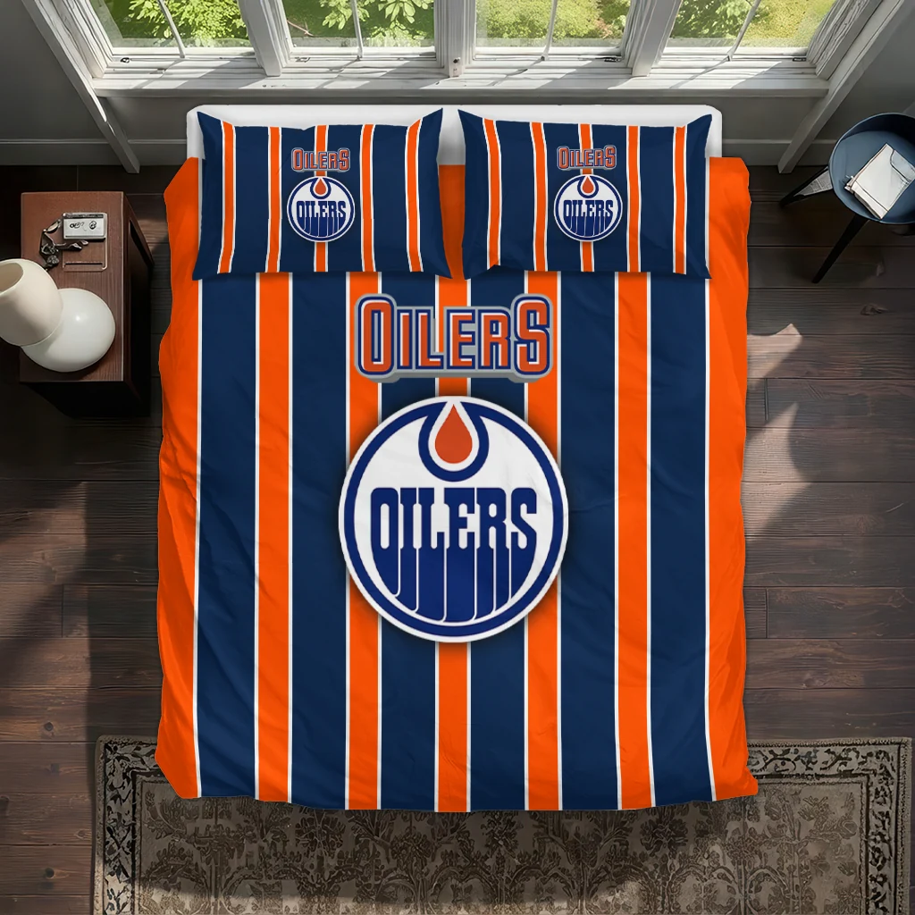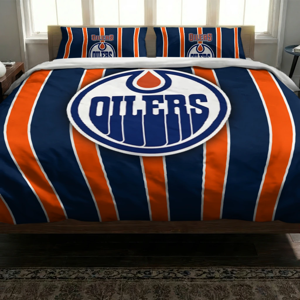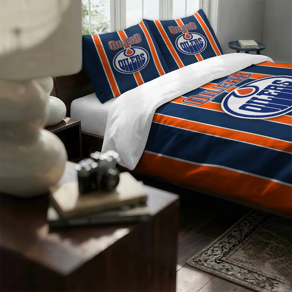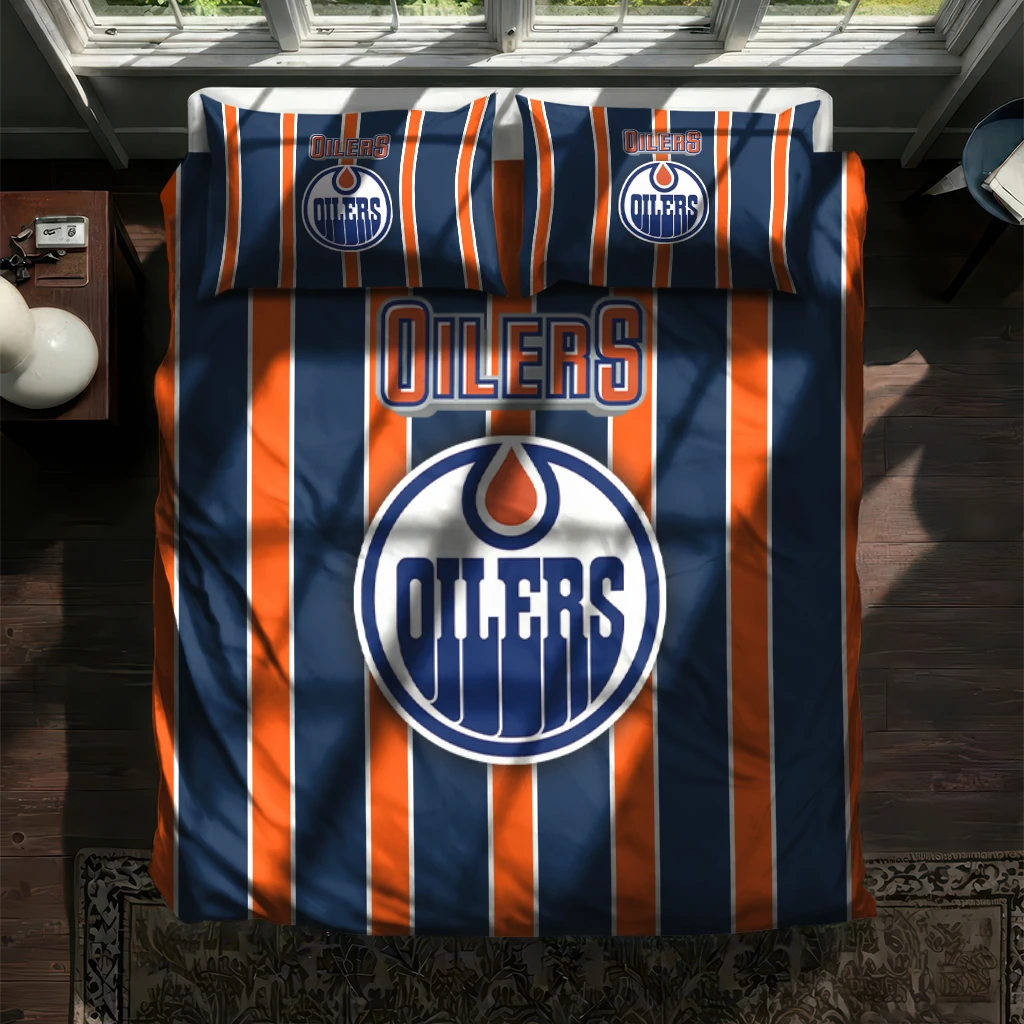 Edmonton Oilers Bedding Set – Stripe Style Blue Orange