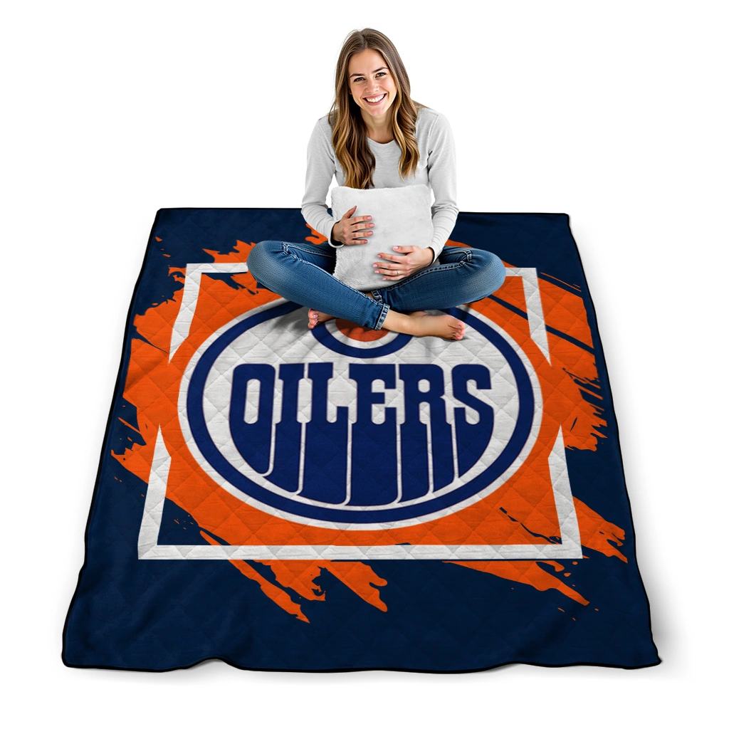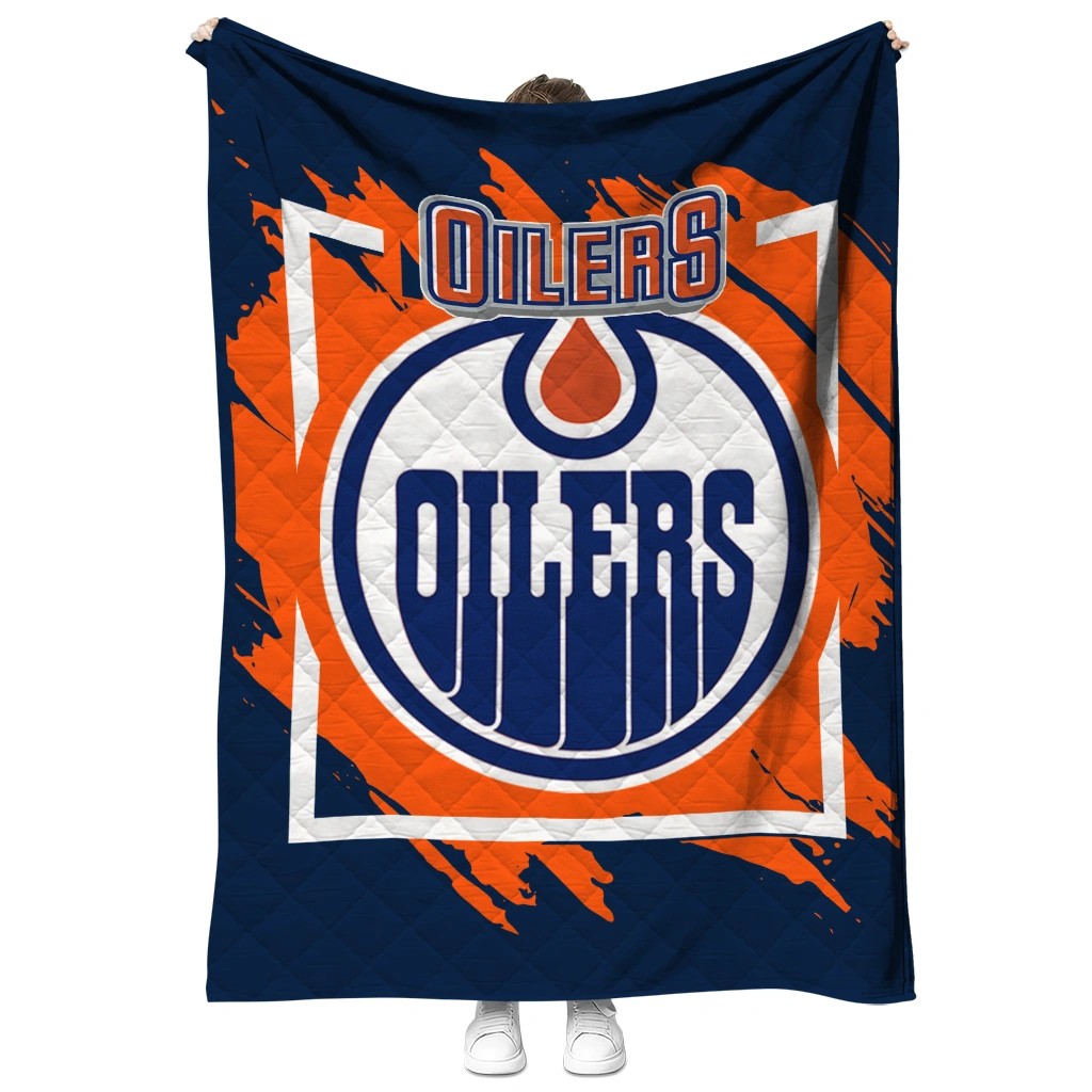 Wrap yourself in warmth and pride with the Edmonton Oilers Block Border Blue Quilt Blanket from the Edmonton Oilers Blankets collection at Yes That Blanket. Made from 100% premium quilting-weight polyester blended with a touch of microfiber, this quilt offers a smooth, soft finish you’ll love. Choose between two quilting styles—Stipple or Diagonal—and enjoy the comfort of a cotton-filled layer inside that adds extra coziness for every season. The border is available in classic black or white, giving your design a clean, timeless edge.