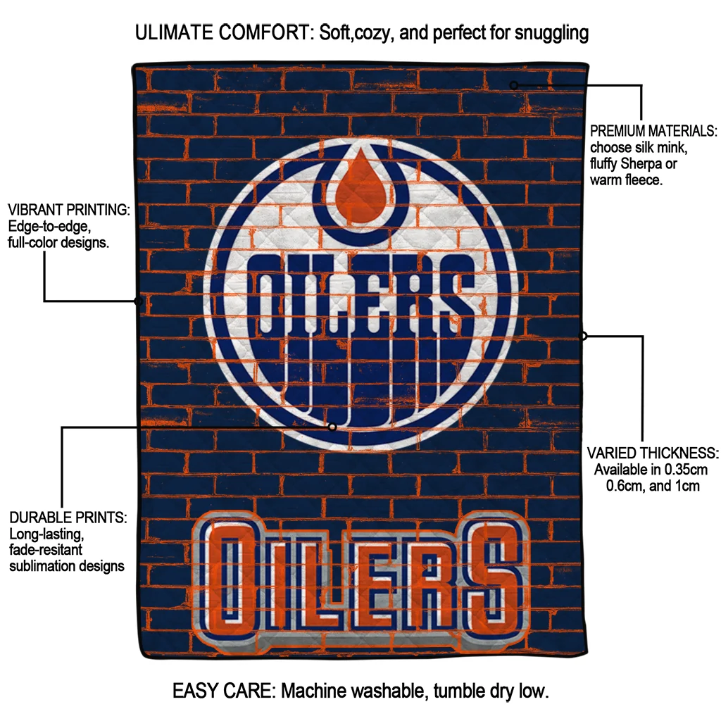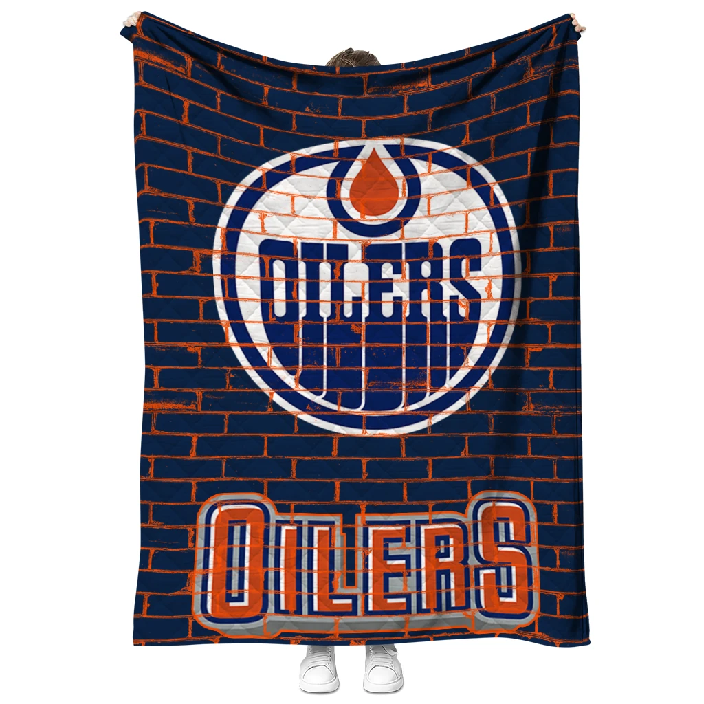 Edmonton Oilers Brick Grid Blue Quilt Blanket