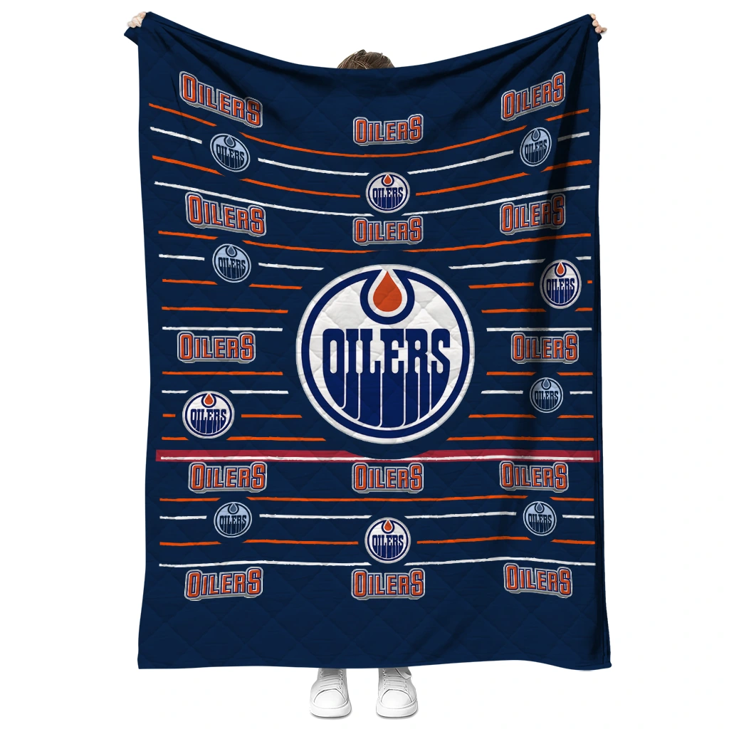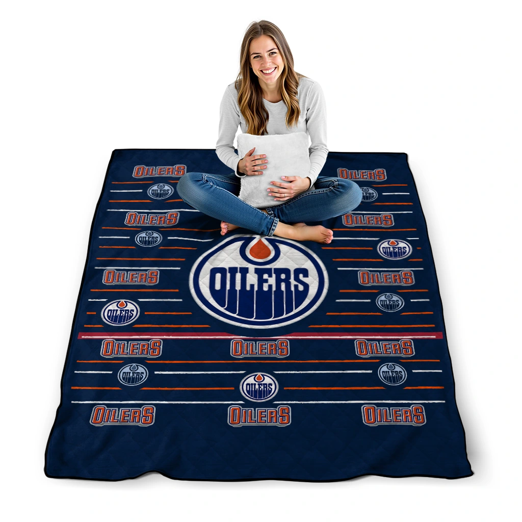 Wrap yourself in warmth and pride with the Edmonton Oilers Handdrawn Stripes Blue Quilt Blanket from the Edmonton Oilers Blankets collection at Yes That Blanket. Made from 100% premium quilting-weight polyester blended with a touch of microfiber, this quilt offers a smooth, soft finish you’ll love. Choose between two quilting styles—Stipple or Diagonal—and enjoy the comfort of a cotton-filled layer inside that adds extra coziness for every season. The border is available in classic black or white, giving your design a clean, timeless edge.