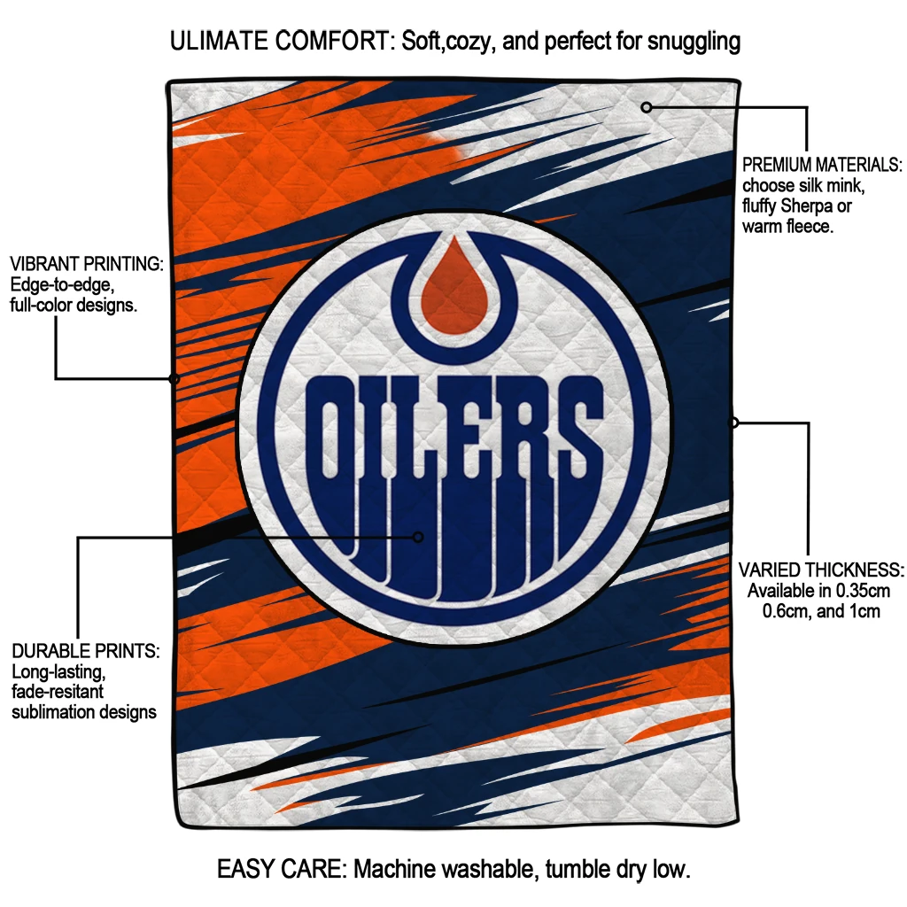 Wrap yourself in warmth and pride with the Edmonton Oilers Wild Lines Blue White Quilt Blanket from the Edmonton Oilers Blankets collection at Yes That Blanket. Made from 100% premium quilting-weight polyester blended with a touch of microfiber, this quilt offers a smooth, soft finish you’ll love. Choose between two quilting styles—Stipple or Diagonal—and enjoy the comfort of a cotton-filled layer inside that adds extra coziness for every season. The border is available in classic black or white, giving your design a clean, timeless edge.