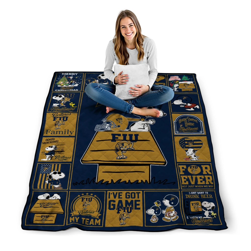 The FIU Panthers Snoopy Love Blue Quilt Blanket is more than a blanket—it’s everyday comfort, thoughtfully made. Crafted from premium quilting fabric with a soft microfiber touch, it offers a smooth hand-feel and lasting coziness. Layered quilting with a cotton-filled core provides adaptable warmth across seasons while maintaining a clean, tailored look on your bed or sofa.