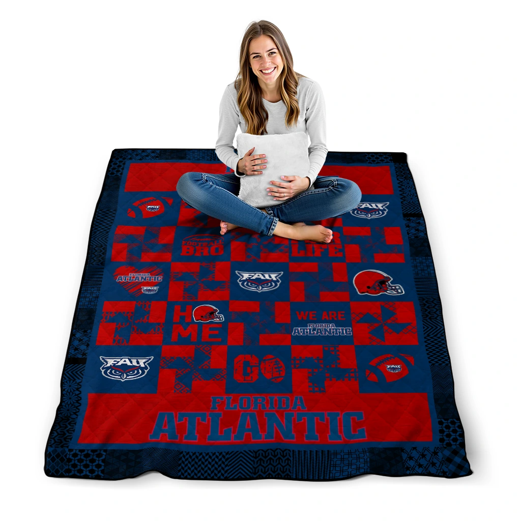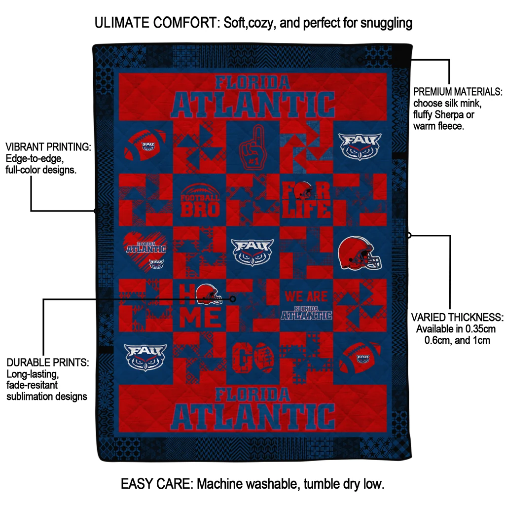 Wrap yourself in warmth and pride with the Florida Atlantic Owls Helmet Heart Blue Quilt Blanket from the Florida Atlantic Owls Blankets collection at Yes That Blanket. Made from 100% premium quilting-weight polyester blended with a touch of microfiber, this quilt offers a smooth, soft finish you’ll love. Choose between two quilting styles—Stipple or Diagonal—and enjoy the comfort of a cotton-filled layer inside that adds extra coziness for every season. The border is available in classic black or white, giving your design a clean, timeless edge.