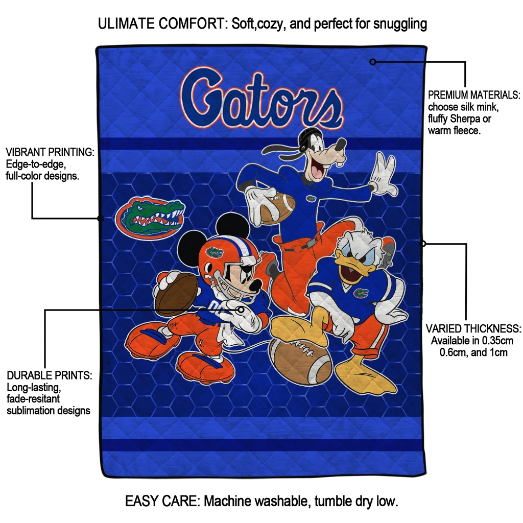 Florida Gators Disney Football Blue Quilt Blanket