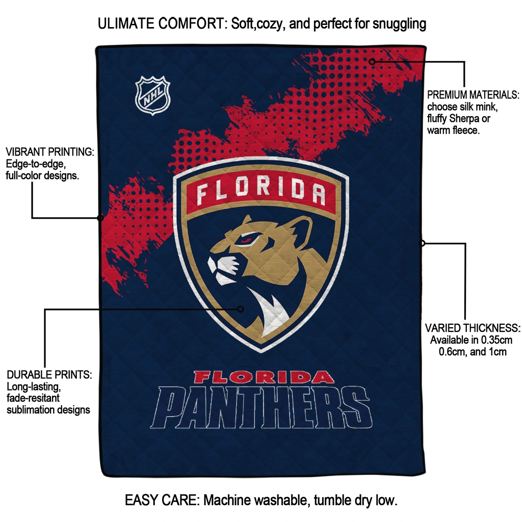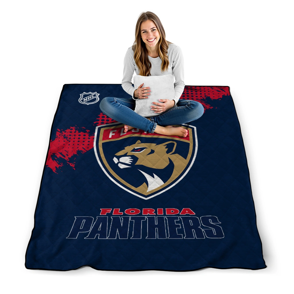 Wrap yourself in warmth and pride with the Florida Panthers NHL Shield Red Quilt Blanket from the Florida Panthers Blankets collection at Yes That Blanket. Made from 100% premium quilting-weight polyester blended with a touch of microfiber, this quilt offers a smooth, soft finish you’ll love. Choose between two quilting styles—Stipple or Diagonal—and enjoy the comfort of a cotton-filled layer inside that adds extra coziness for every season. The border is available in classic black or white, giving your design a clean, timeless edge.