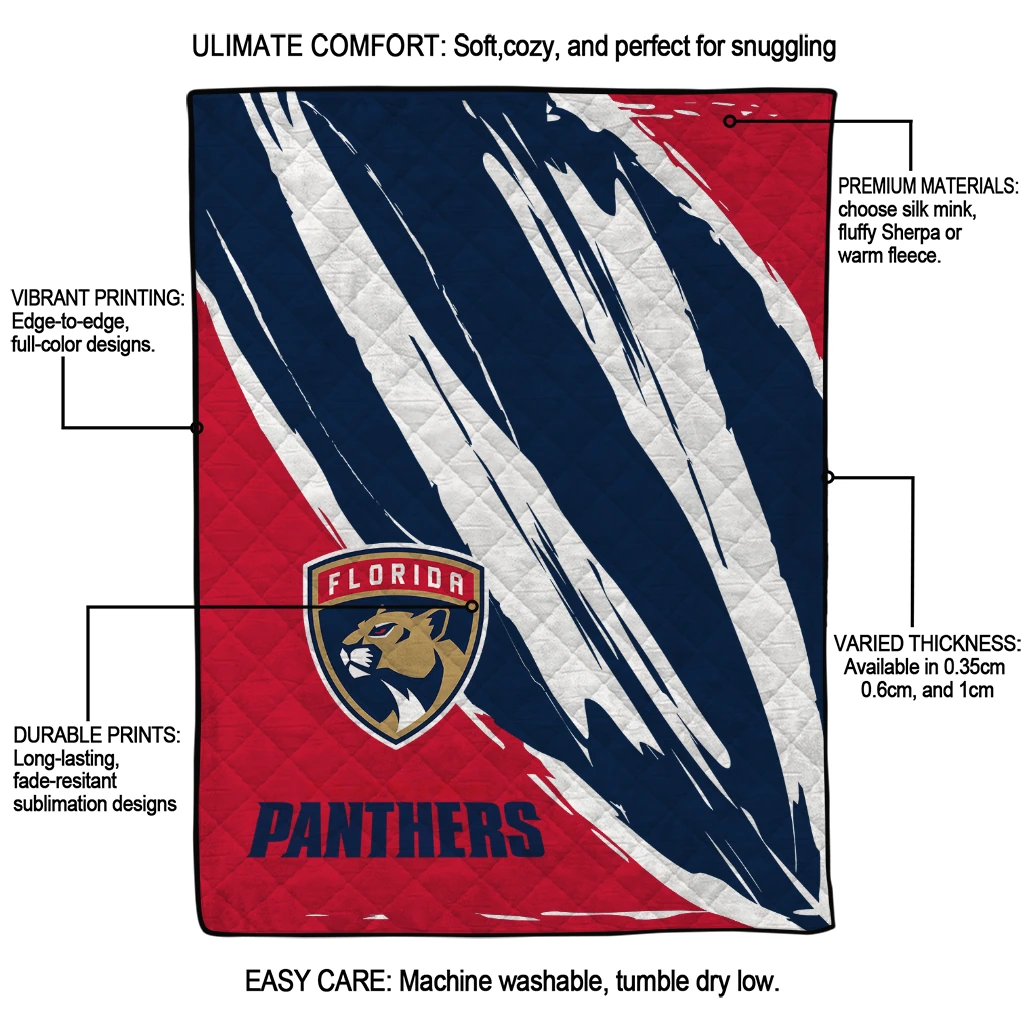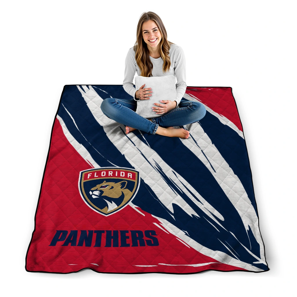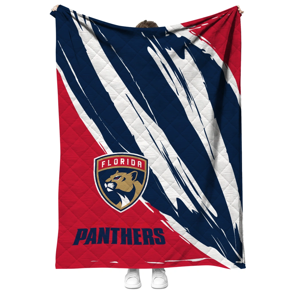 Wrap yourself in warmth and pride with the Florida Panthers Stroke Art Red White Quilt Blanket from the Florida Panthers Blankets collection at Yes That Blanket. Made from 100% premium quilting-weight polyester blended with a touch of microfiber, this quilt offers a smooth, soft finish you’ll love. Choose between two quilting styles—Stipple or Diagonal—and enjoy the comfort of a cotton-filled layer inside that adds extra coziness for every season. The border is available in classic black or white, giving your design a clean, timeless edge.