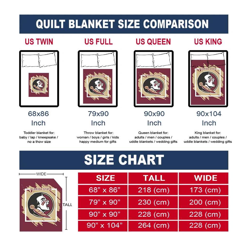 Wrap yourself in warmth and pride with the Florida State Seminoles Block Border Garnet Quilt Blanket from the Florida State Seminoles Blankets collection at Yes That Blanket. Made from 100% premium quilting-weight polyester blended with a touch of microfiber, this quilt offers a smooth, soft finish you’ll love. Choose between two quilting styles—Stipple or Diagonal—and enjoy the comfort of a cotton-filled layer inside that adds extra coziness for every season. The border is available in classic black or white, giving your design a clean, timeless edge.