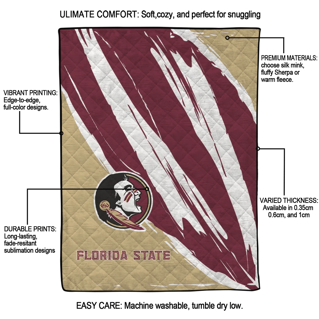 Florida State Seminoles Stroke Art Garnet White Quilt Blanket