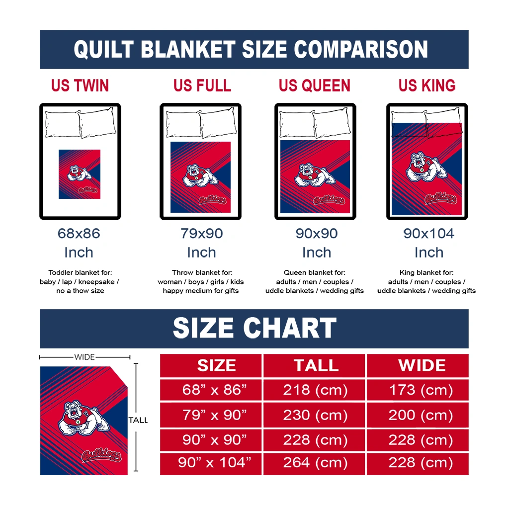 Wrap yourself in warmth and pride with the Fresno State Bulldogs Arrow Layers Red Quilt Blanket from the Fresno State Bulldogs Blankets collection at Yes That Blanket. Made from 100% premium quilting-weight polyester blended with a touch of microfiber, this quilt offers a smooth, soft finish you’ll love. Choose between two quilting styles—Stipple or Diagonal—and enjoy the comfort of a cotton-filled layer inside that adds extra coziness for every season. The border is available in classic black or white, giving your design a clean, timeless edge.