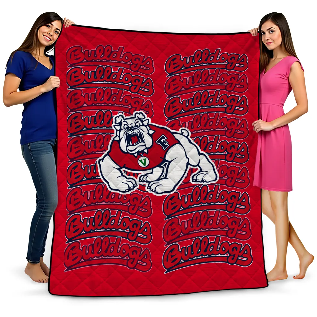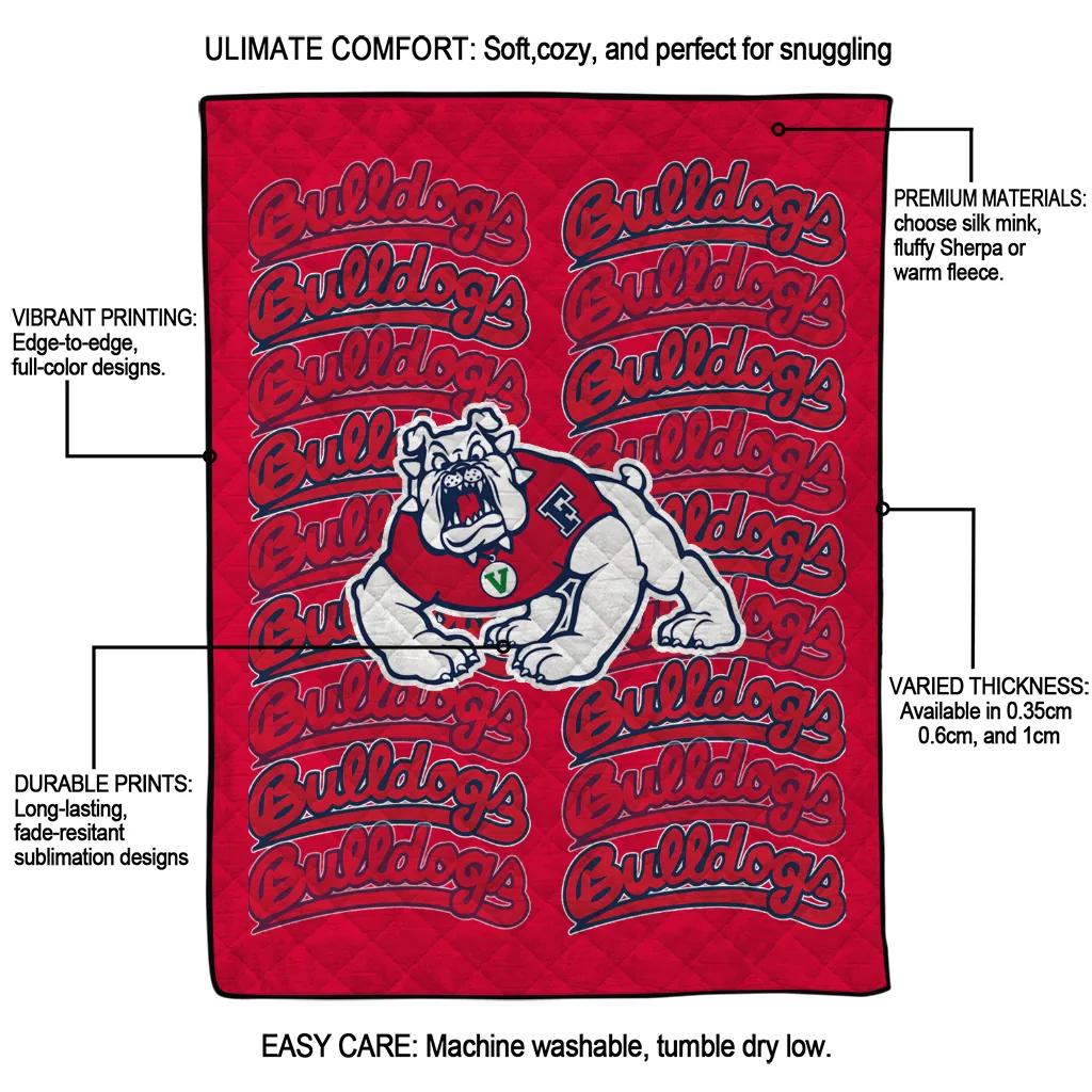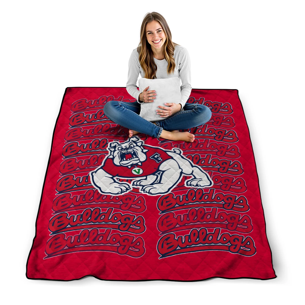 Wrap yourself in warmth and pride with the Fresno State Bulldogs Bold Red Quilt Blanket from the Fresno State Bulldogs Blankets collection at Yes That Blanket. Made from 100% premium quilting-weight polyester blended with a touch of microfiber, this quilt offers a smooth, soft finish you’ll love. Choose between two quilting styles—Stipple or Diagonal—and enjoy the comfort of a cotton-filled layer inside that adds extra coziness for every season. The border is available in classic black or white, giving your design a clean, timeless edge.