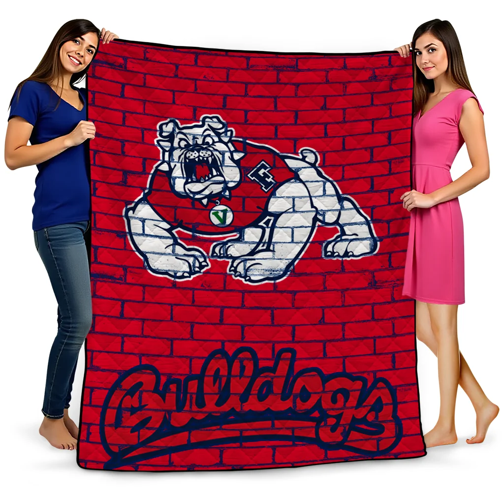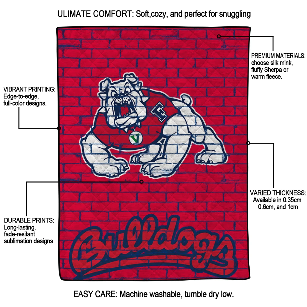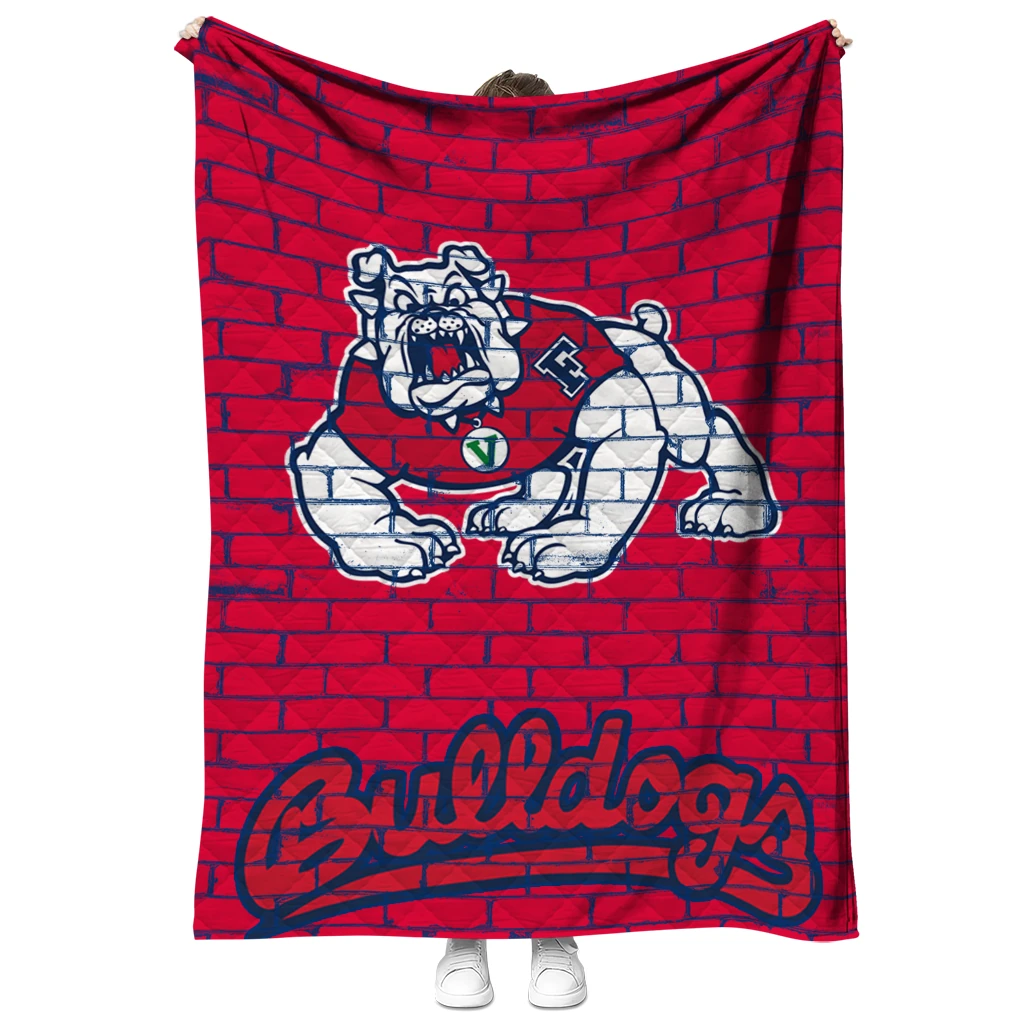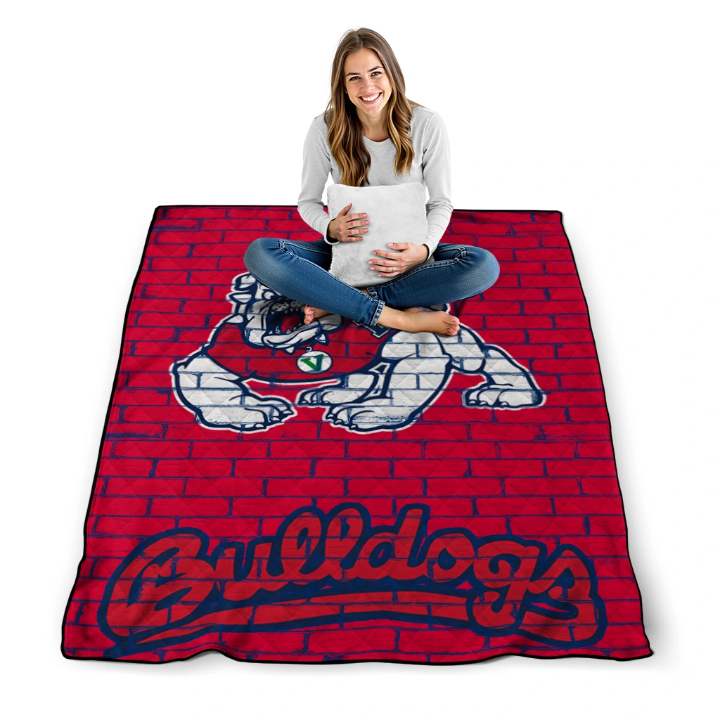 Wrap yourself in warmth and pride with the Fresno State Bulldogs Brick Grid Red Quilt Blanket from the Fresno State Bulldogs Blankets collection at Yes That Blanket. Made from 100% premium quilting-weight polyester blended with a touch of microfiber, this quilt offers a smooth, soft finish you’ll love. Choose between two quilting styles—Stipple or Diagonal—and enjoy the comfort of a cotton-filled layer inside that adds extra coziness for every season. The border is available in classic black or white, giving your design a clean, timeless edge.