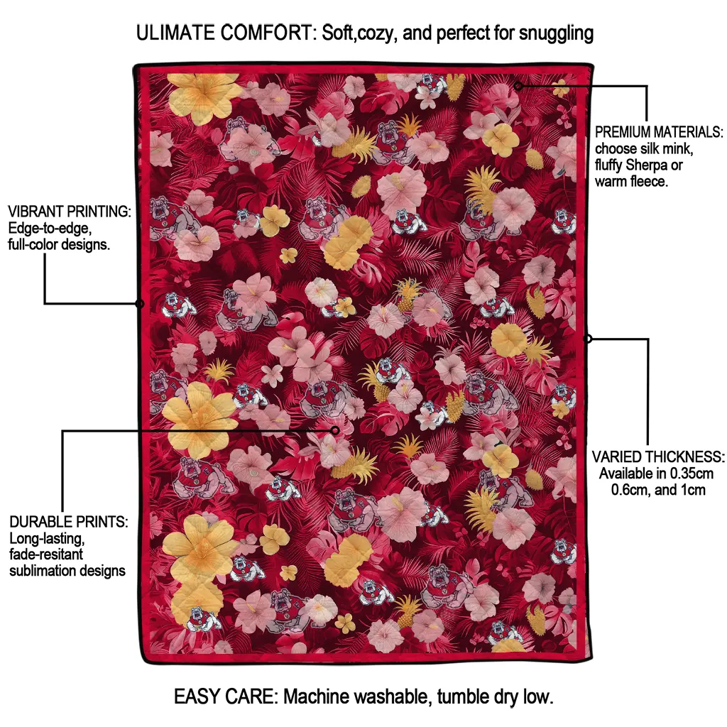 Wrap yourself in warmth and pride with the Fresno State Bulldogs Hibiscus Foliage Red Quilt Blanket from the Fresno State Bulldogs Blankets collection at Yes That Blanket. Made from 100% premium quilting-weight polyester blended with a touch of microfiber, this quilt offers a smooth, soft finish you’ll love. Choose between two quilting styles—Stipple or Diagonal—and enjoy the comfort of a cotton-filled layer inside that adds extra coziness for every season. The border is available in classic black or white, giving your design a clean, timeless edge.