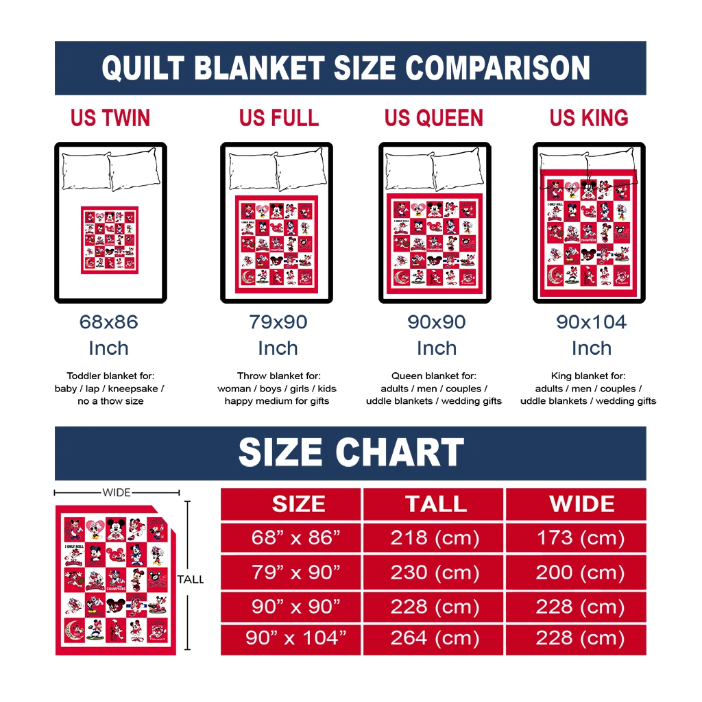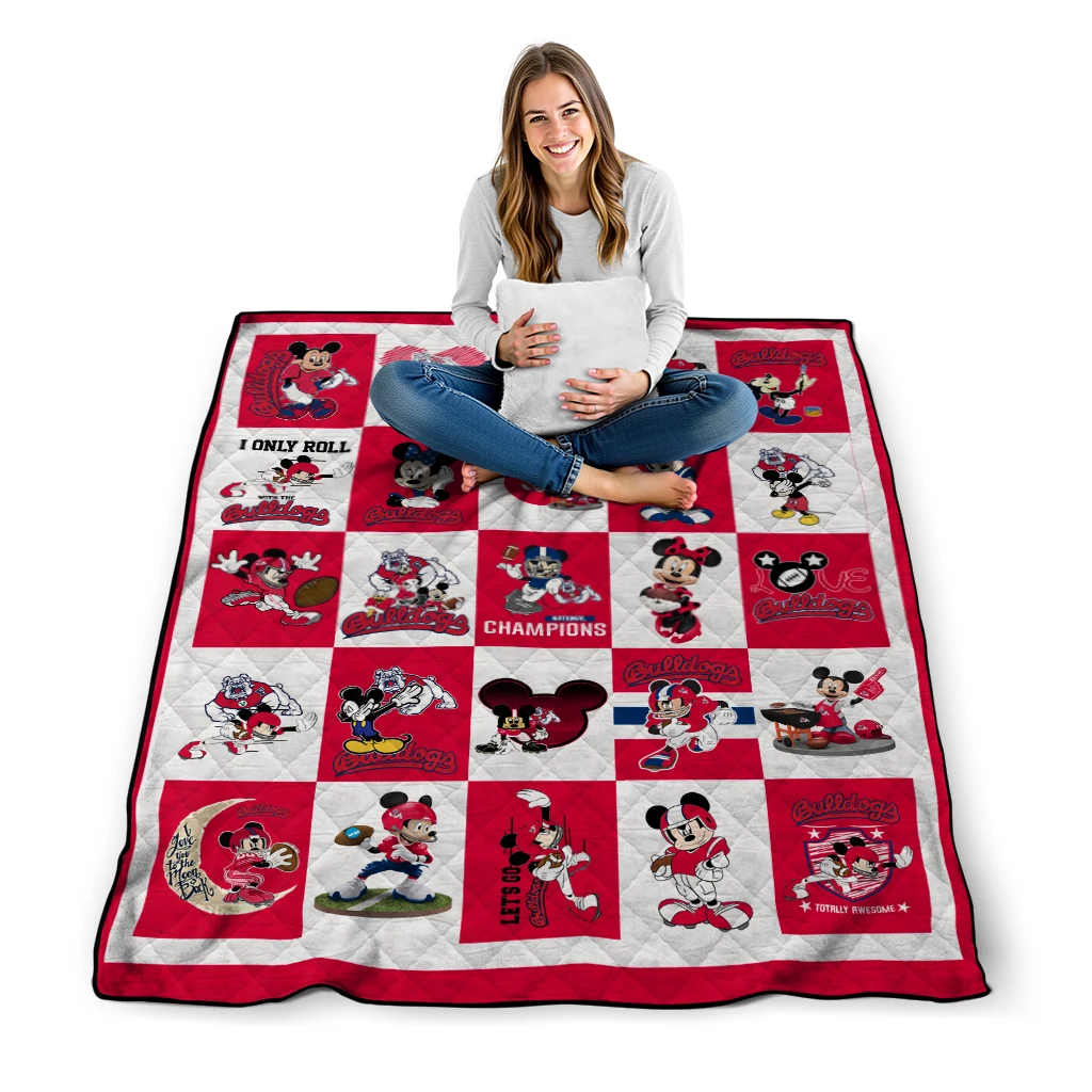 The Fresno State Bulldogs Mickey Mouse Motif Red White Quilt Blanket is more than a blanket—it’s everyday comfort, thoughtfully made. Crafted from premium quilting fabric with a soft microfiber touch, it offers a smooth hand-feel and lasting coziness. Layered quilting with a cotton-filled core provides adaptable warmth across seasons while maintaining a clean, tailored look on your bed or sofa.
