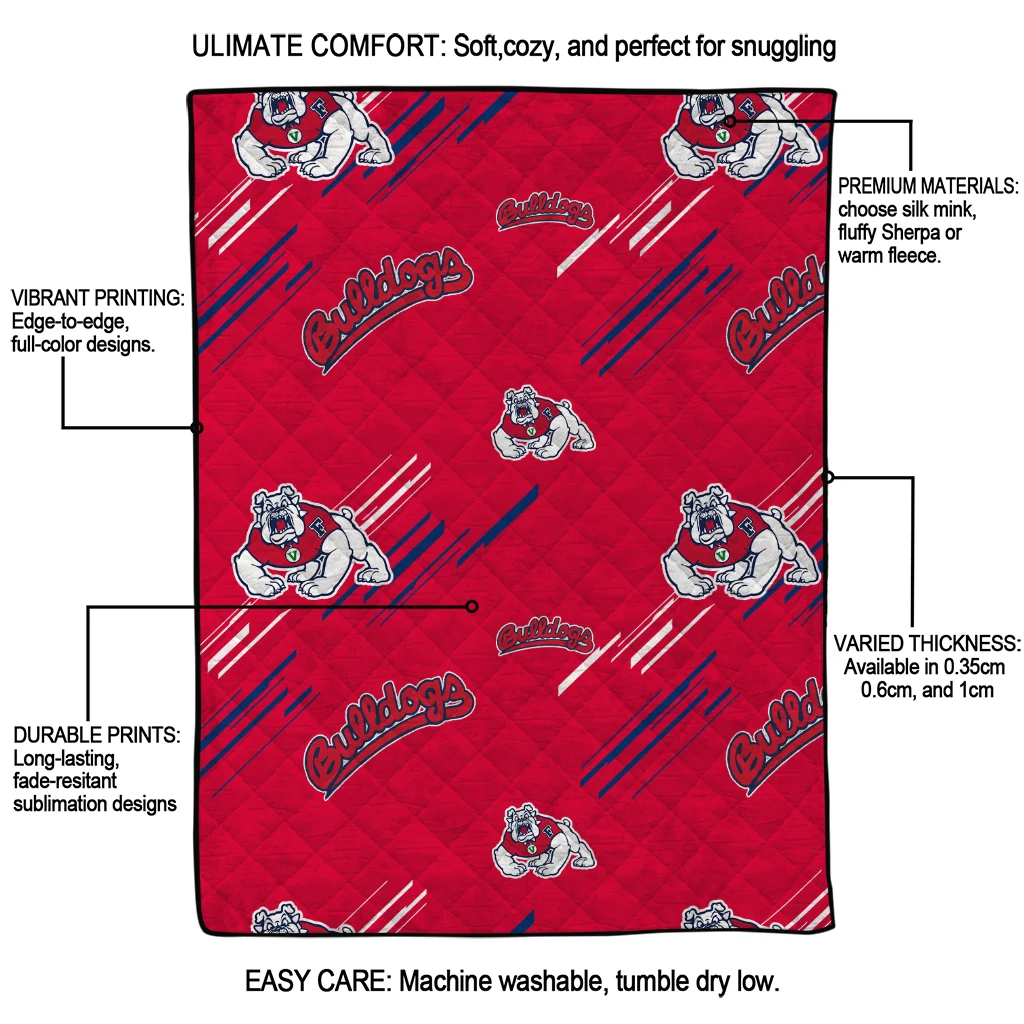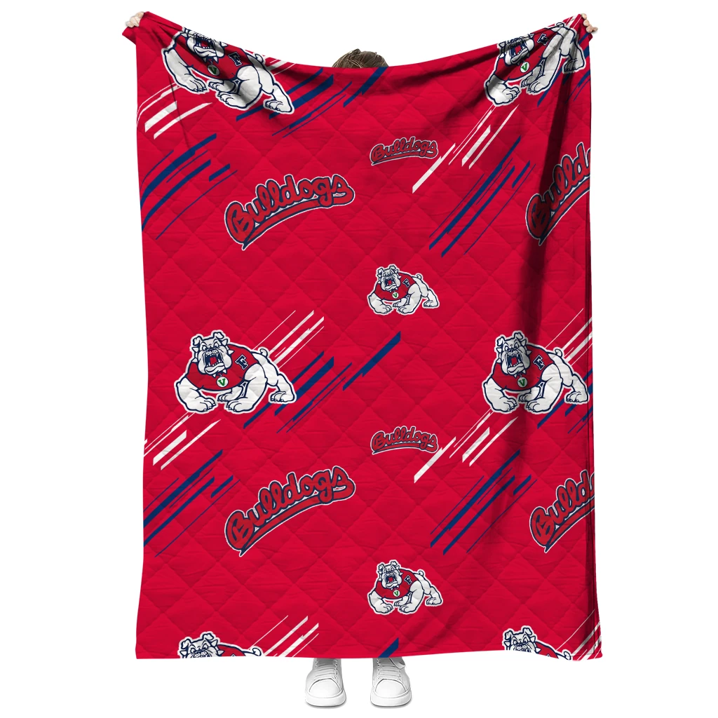 Wrap yourself in warmth and pride with the Fresno State Bulldogs Sketch Lines Red Quilt Blanket from the Fresno State Bulldogs Blankets collection at Yes That Blanket. Made from 100% premium quilting-weight polyester blended with a touch of microfiber, this quilt offers a smooth, soft finish you’ll love. Choose between two quilting styles—Stipple or Diagonal—and enjoy the comfort of a cotton-filled layer inside that adds extra coziness for every season. The border is available in classic black or white, giving your design a clean, timeless edge.