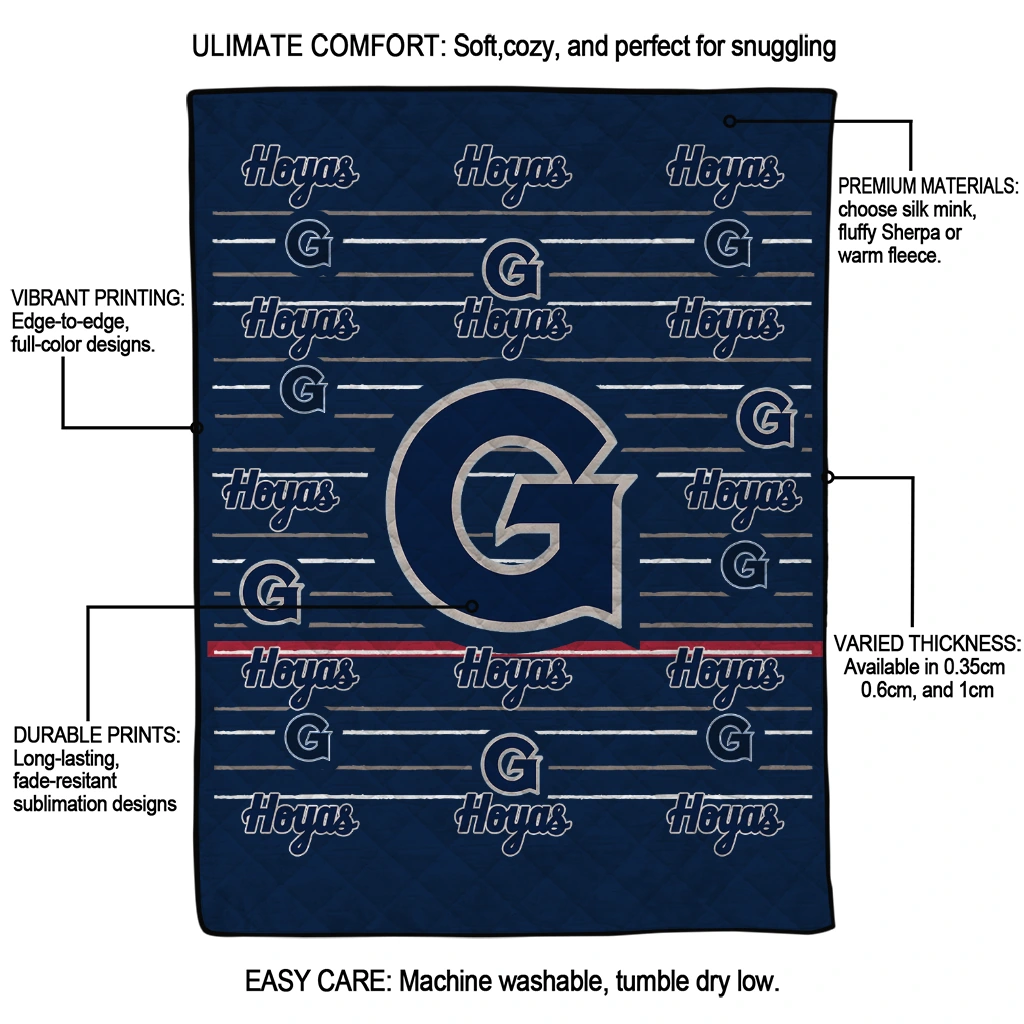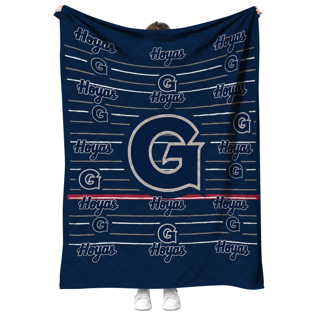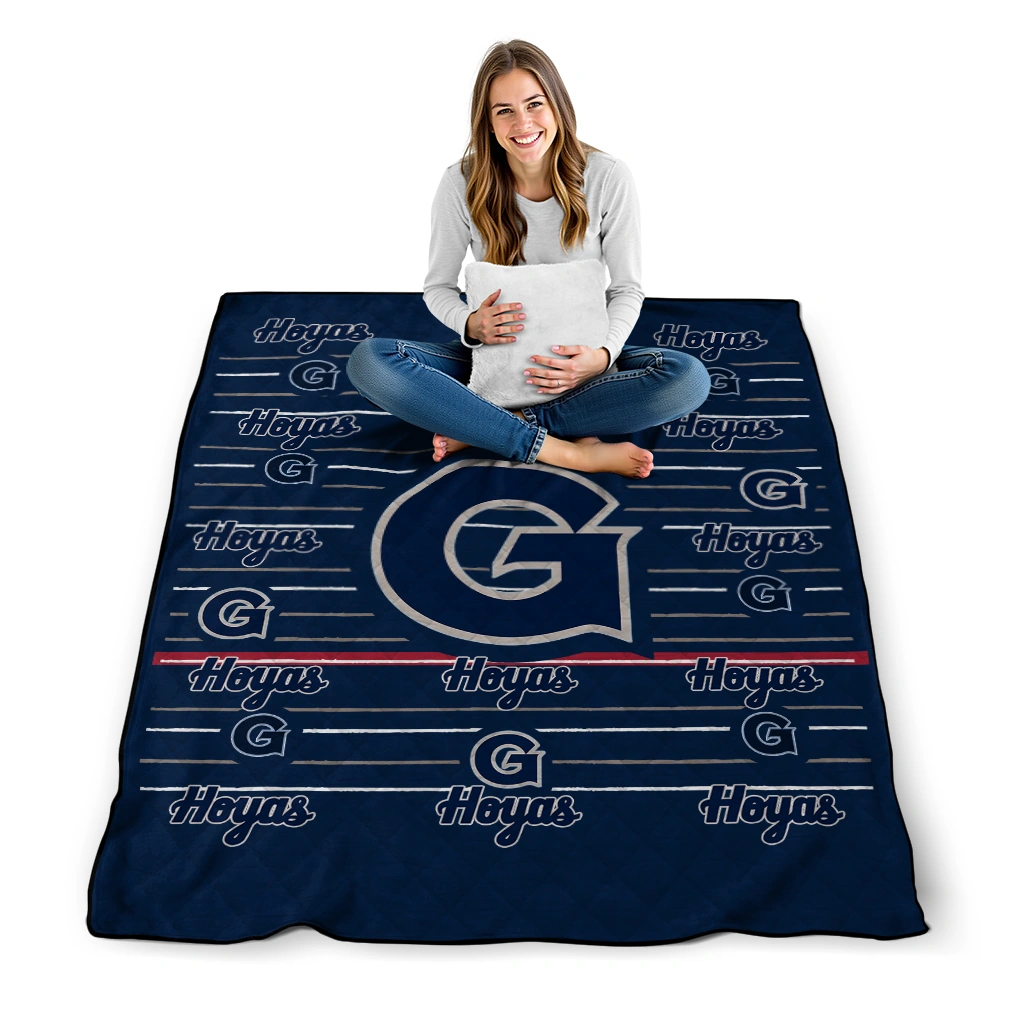 Wrap yourself in warmth and pride with the Georgetown Hoyas Handdrawn Stripes Blue Quilt Blanket from the Georgetown Hoyas Blankets collection at Yes That Blanket. Made from 100% premium quilting-weight polyester blended with a touch of microfiber, this quilt offers a smooth, soft finish you’ll love. Choose between two quilting styles—Stipple or Diagonal—and enjoy the comfort of a cotton-filled layer inside that adds extra coziness for every season. The border is available in classic black or white, giving your design a clean, timeless edge.