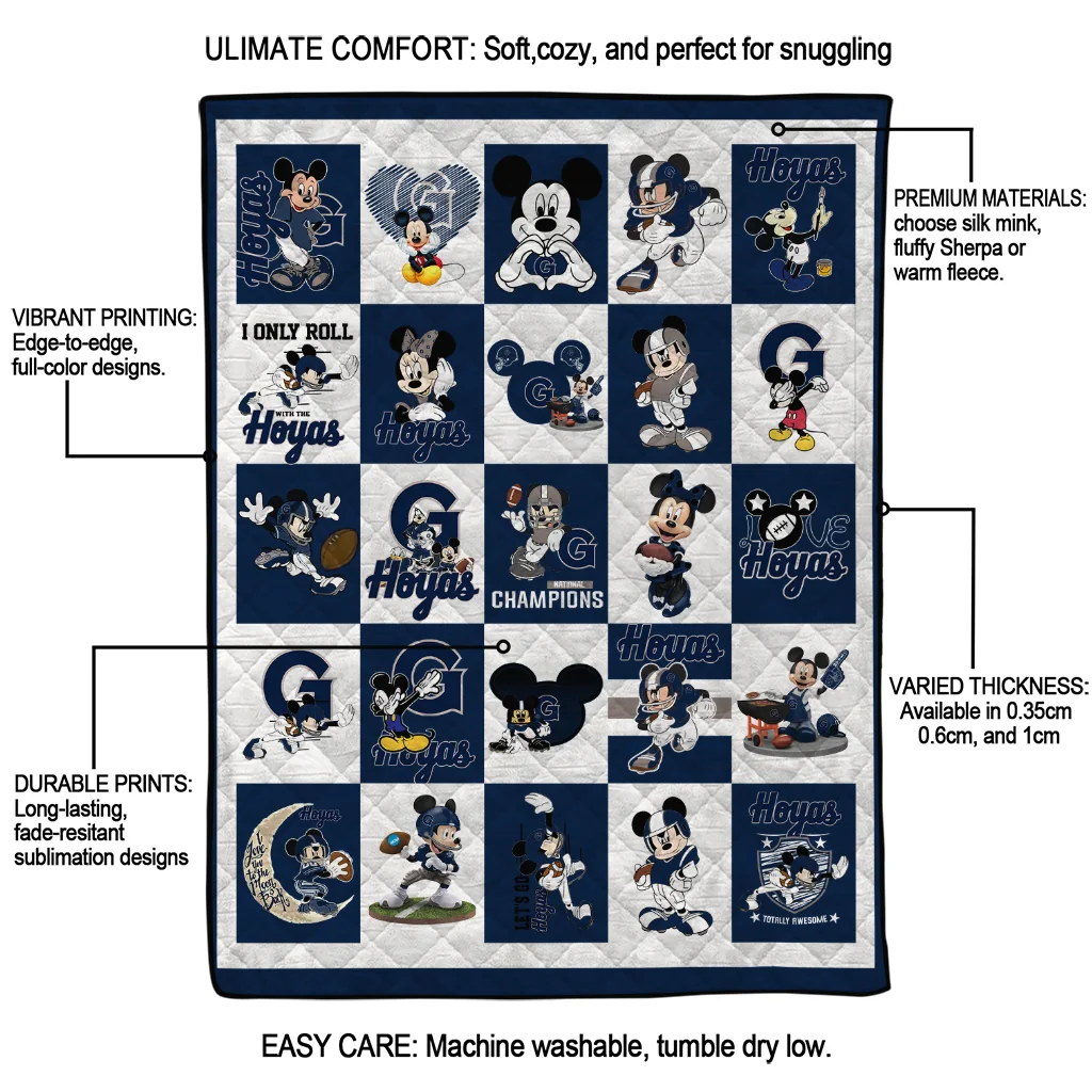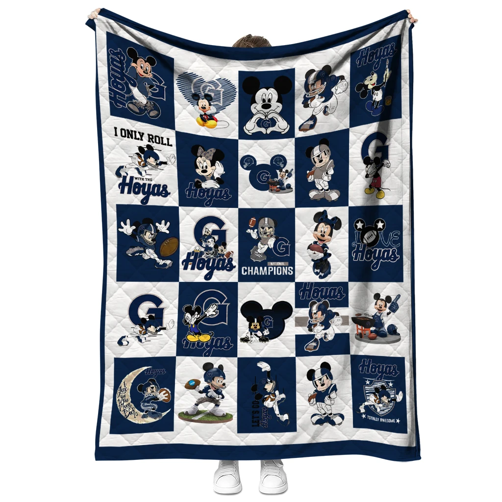 Georgetown Hoyas Mickey Mouse Motif Blue White Quilt Blanket