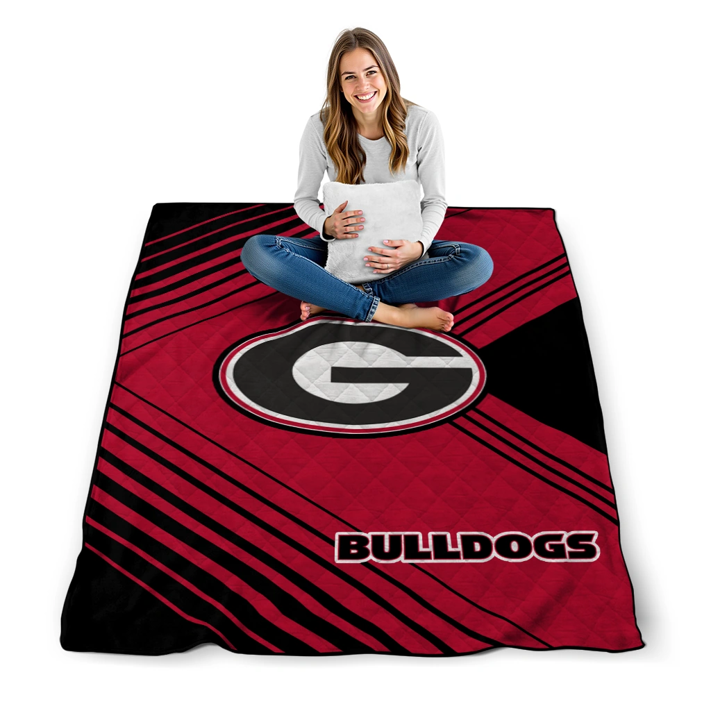Wrap yourself in warmth and pride with the Georgia Bulldogs Arrow Layers Red Quilt Blanket from the Georgia Bulldogs Blankets collection at Yes That Blanket. Made from 100% premium quilting-weight polyester blended with a touch of microfiber, this quilt offers a smooth, soft finish you’ll love. Choose between two quilting styles—Stipple or Diagonal—and enjoy the comfort of a cotton-filled layer inside that adds extra coziness for every season. The border is available in classic black or white, giving your design a clean, timeless edge.