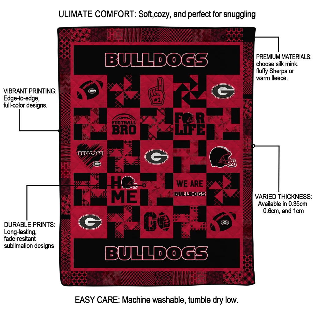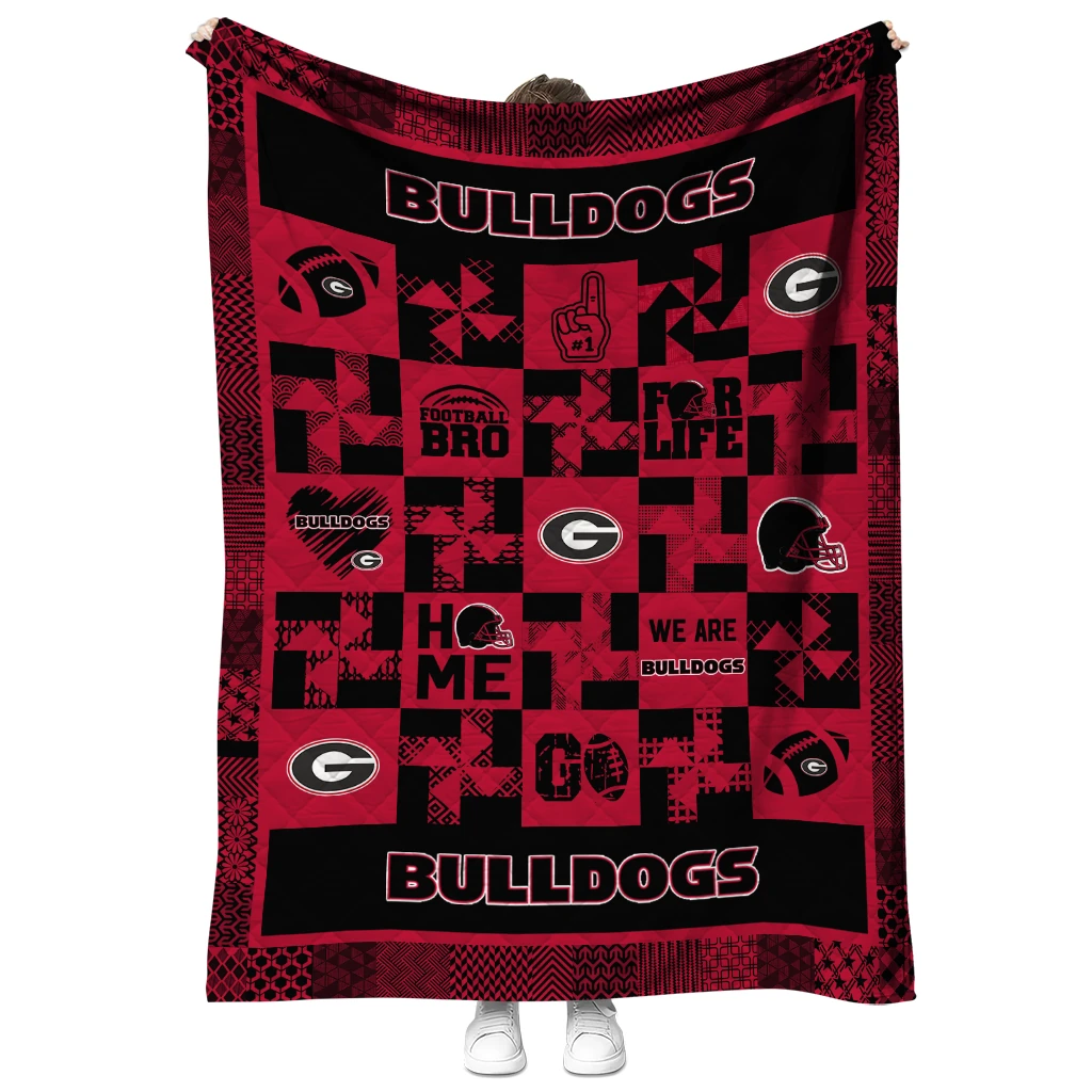 Wrap yourself in warmth and pride with the Georgia Bulldogs Helmet Heart Red Quilt Blanket from the Georgia Bulldogs Blankets collection at Yes That Blanket. Made from 100% premium quilting-weight polyester blended with a touch of microfiber, this quilt offers a smooth, soft finish you’ll love. Choose between two quilting styles—Stipple or Diagonal—and enjoy the comfort of a cotton-filled layer inside that adds extra coziness for every season. The border is available in classic black or white, giving your design a clean, timeless edge.