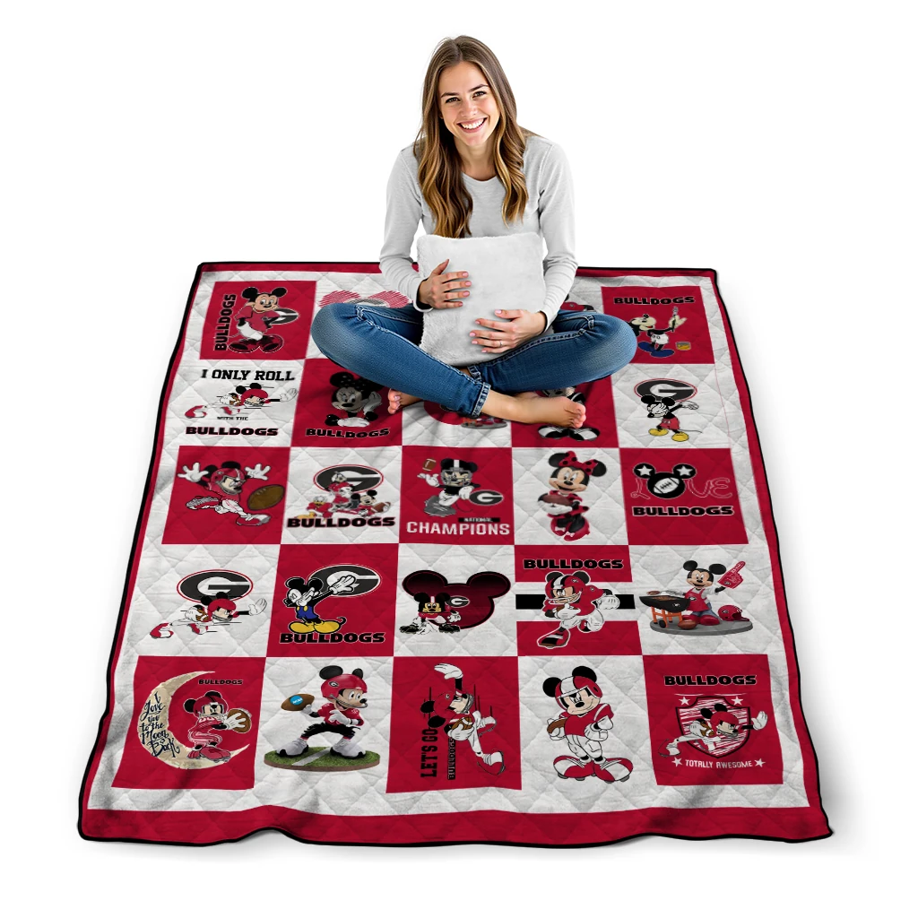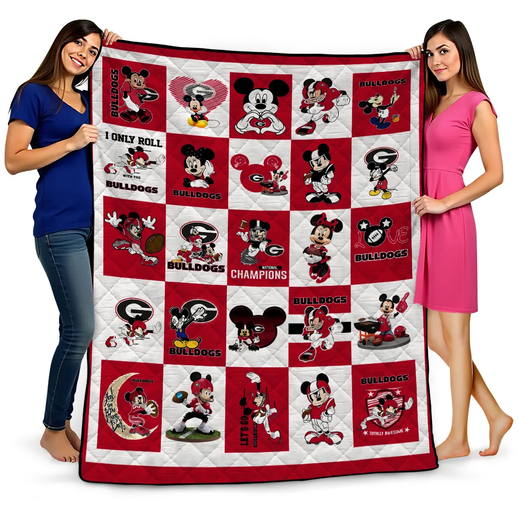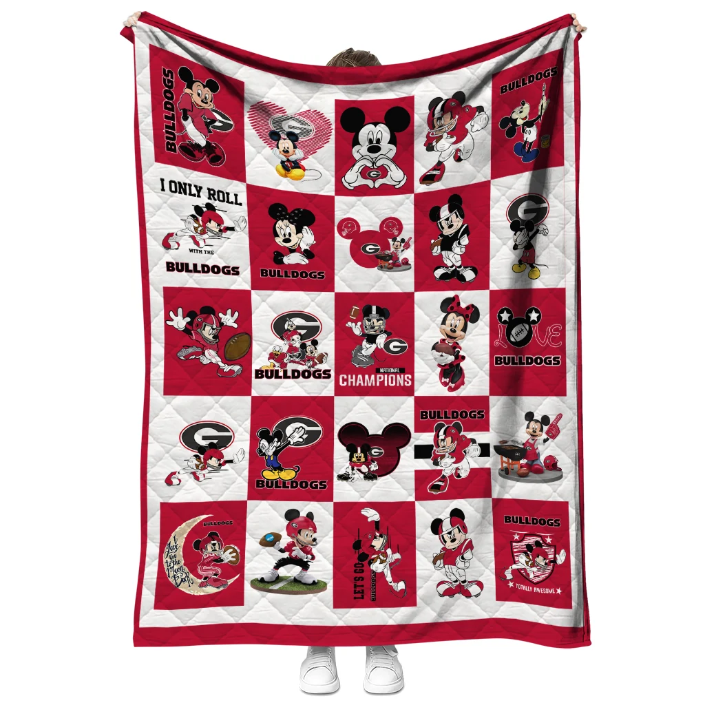 Georgia Bulldogs Mickey Mouse Motif Red White Quilt Blanket
