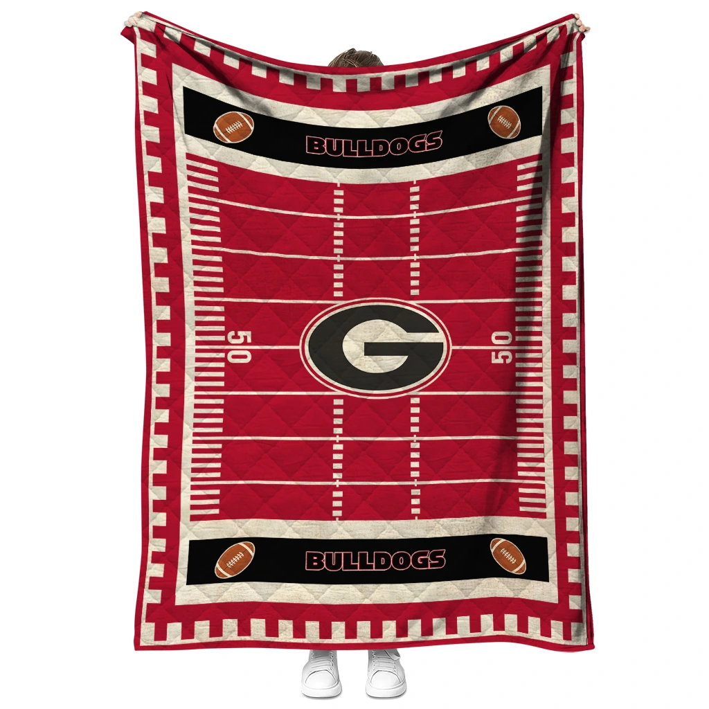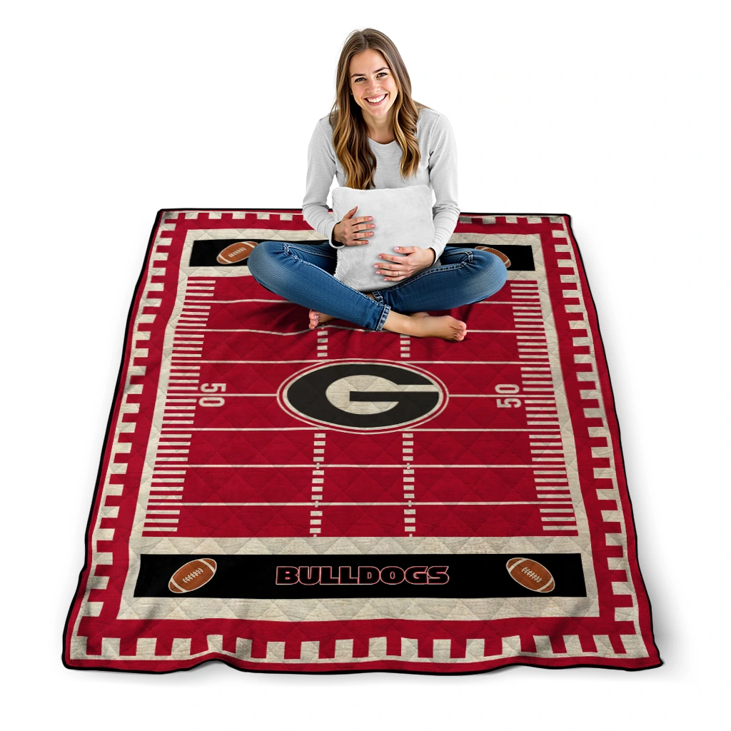 Wrap yourself in warmth and pride with the Georgia Bulldogs Mickey Player Red Quilt Blanket from the Georgia Bulldogs Blankets collection at Yes That Blanket. Made from 100% premium quilting-weight polyester blended with a touch of microfiber, this quilt offers a smooth, soft finish you’ll love. Choose between two quilting styles—Stipple or Diagonal—and enjoy the comfort of a cotton-filled layer inside that adds extra coziness for every season. The border is available in classic black or white, giving your design a clean, timeless edge.