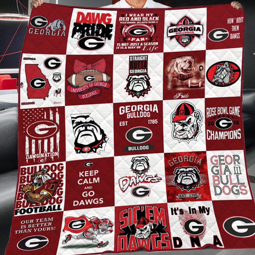 Georgia Bulldogs Quilt Blanket – Patchwork Logo Red White