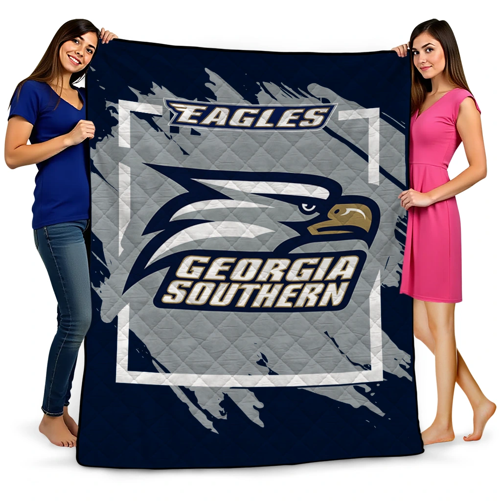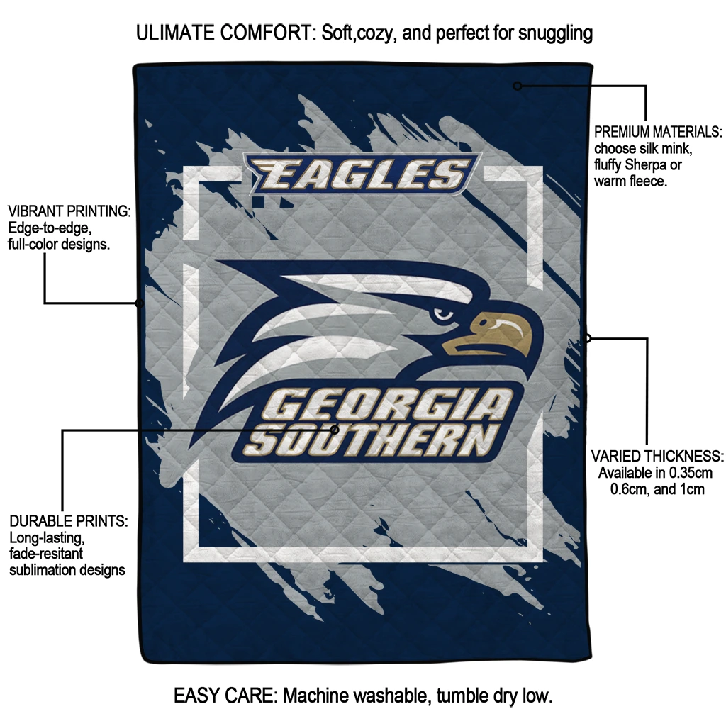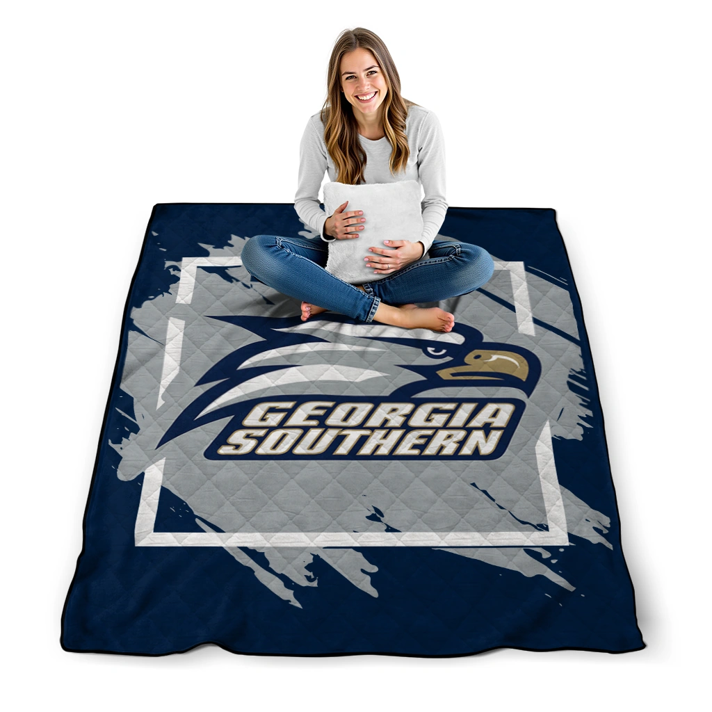 Wrap yourself in warmth and pride with the Georgia Southern Eagles Block Border Blue Quilt Blanket from the Georgia Southern Eagles Blankets collection at Yes That Blanket. Made from 100% premium quilting-weight polyester blended with a touch of microfiber, this quilt offers a smooth, soft finish you’ll love. Choose between two quilting styles—Stipple or Diagonal—and enjoy the comfort of a cotton-filled layer inside that adds extra coziness for every season. The border is available in classic black or white, giving your design a clean, timeless edge.