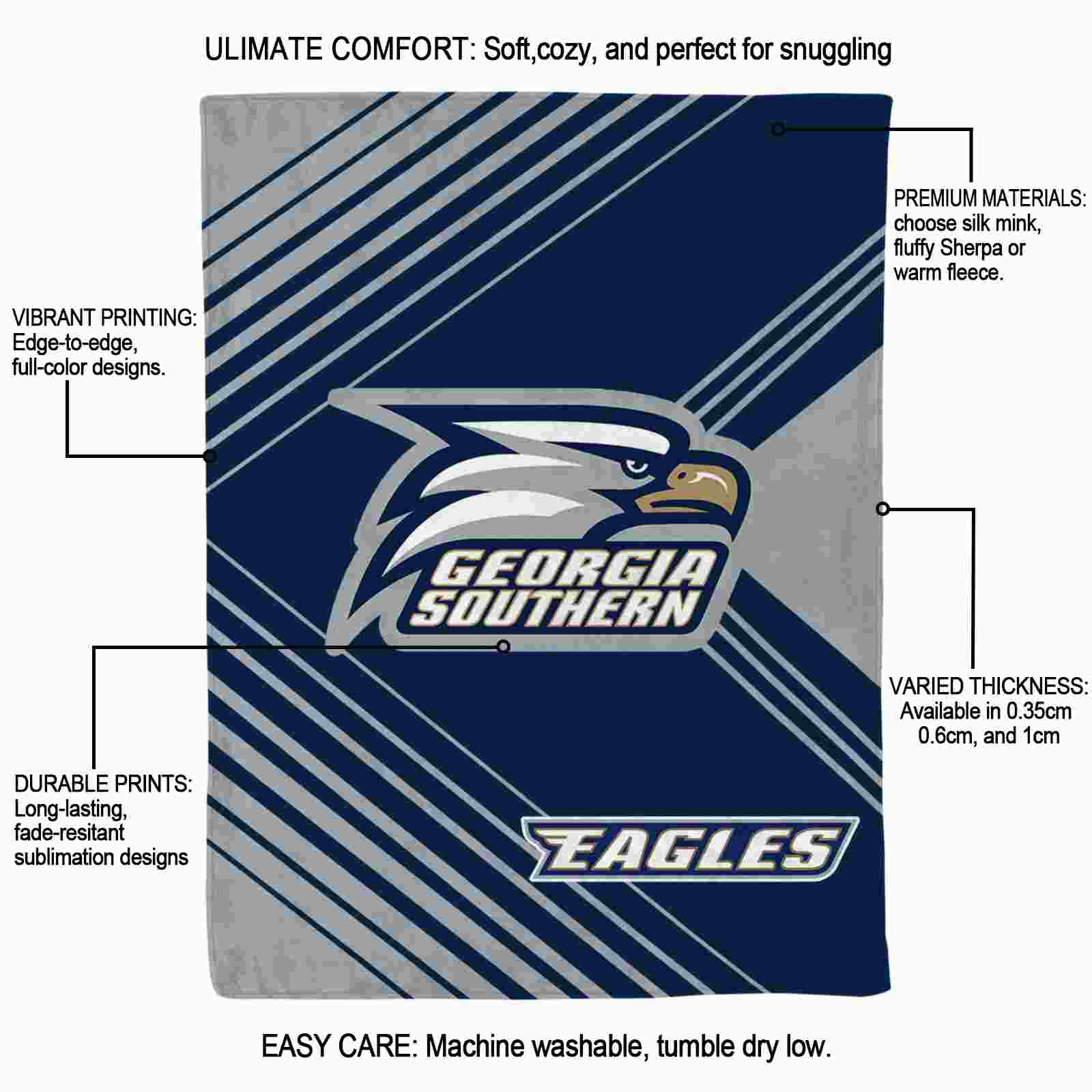 Without a doubt, the Georgia Southern Eagles Diagonal Stripes Blue Blanket from Georgia Southern Eagles Blankets collection is offering true fans a chance to showcase passion in a cool way. Personalize it with your favorite team’s logo or a meaningful name to make it uniquely yours. Isn’t that great? The full-color print ensures vibrant, edge-to-edge designs, bringing your sports enthusiasm to life!
