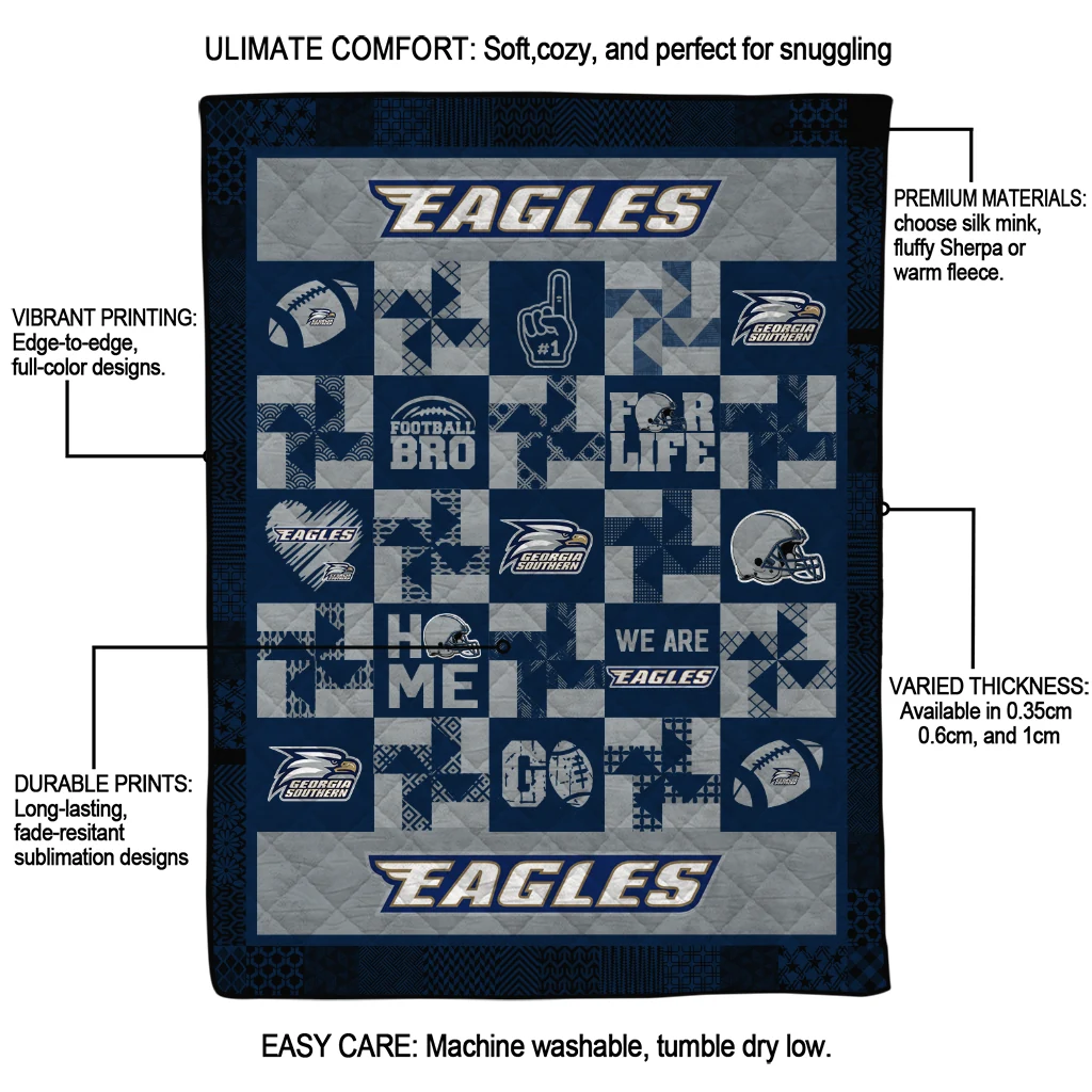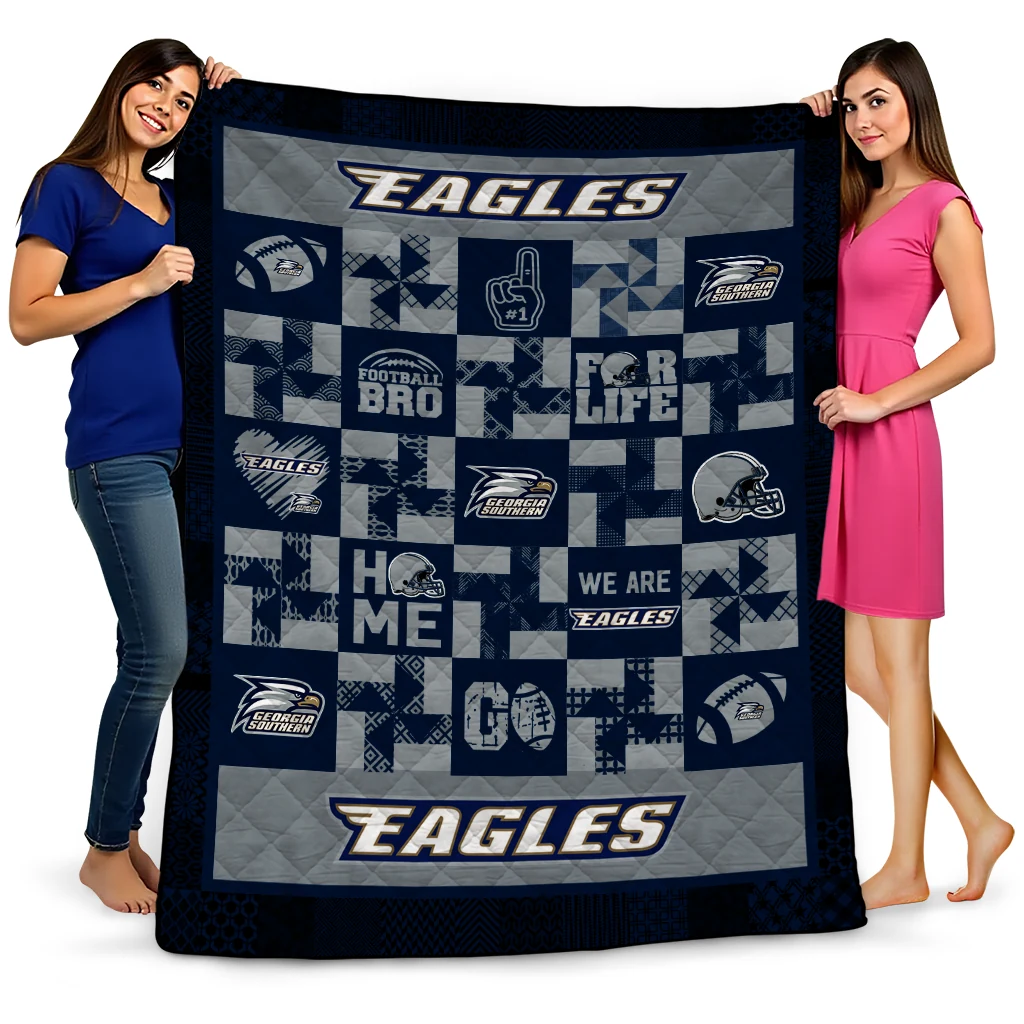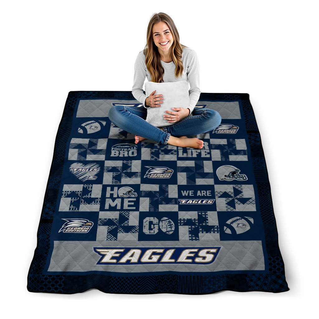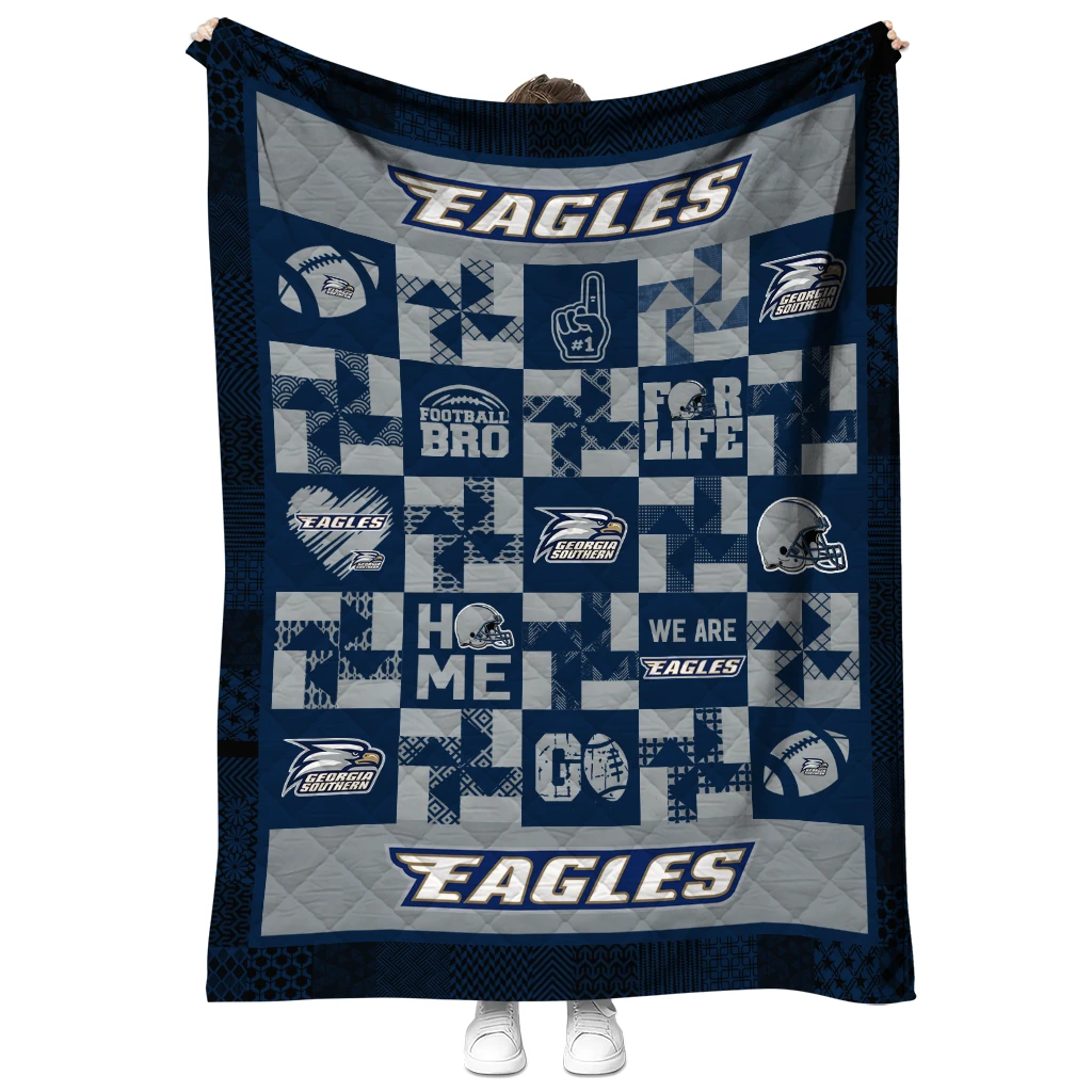 Wrap yourself in warmth and pride with the Georgia Southern Eagles Helmet Heart Blue Quilt Blanket from the Georgia Southern Eagles Blankets collection at Yes That Blanket. Made from 100% premium quilting-weight polyester blended with a touch of microfiber, this quilt offers a smooth, soft finish you’ll love. Choose between two quilting styles—Stipple or Diagonal—and enjoy the comfort of a cotton-filled layer inside that adds extra coziness for every season. The border is available in classic black or white, giving your design a clean, timeless edge.