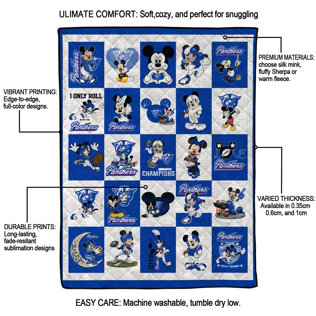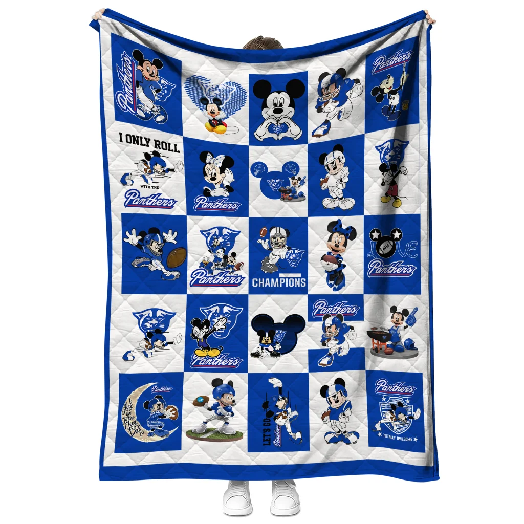 Georgia State Panthers Mickey Mouse Motif Blue White Quilt Blanket