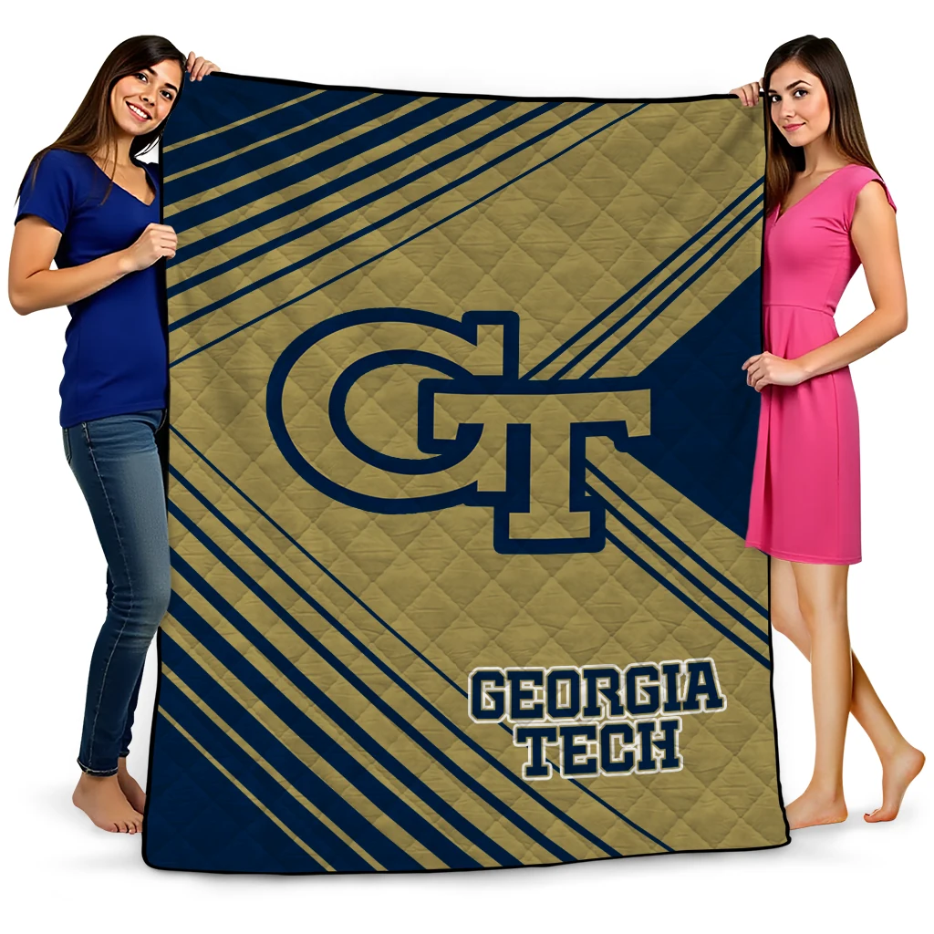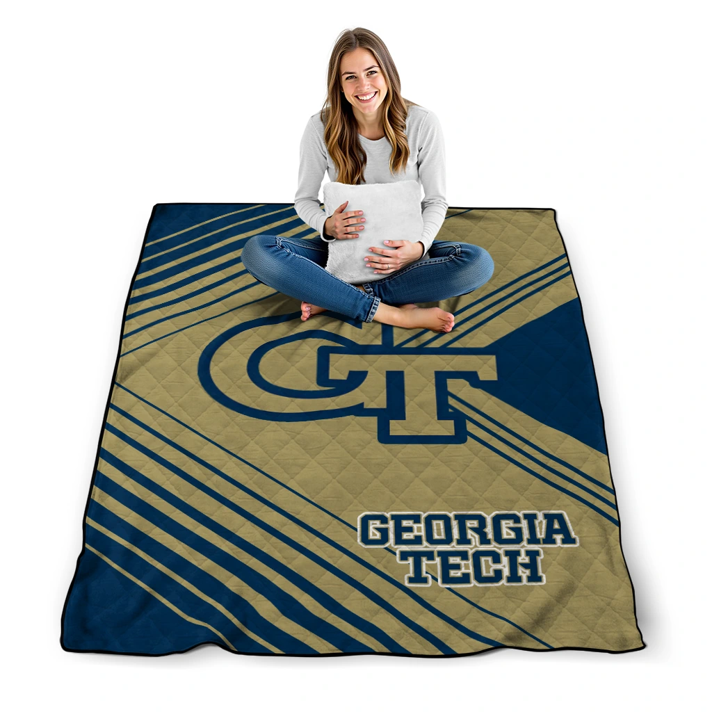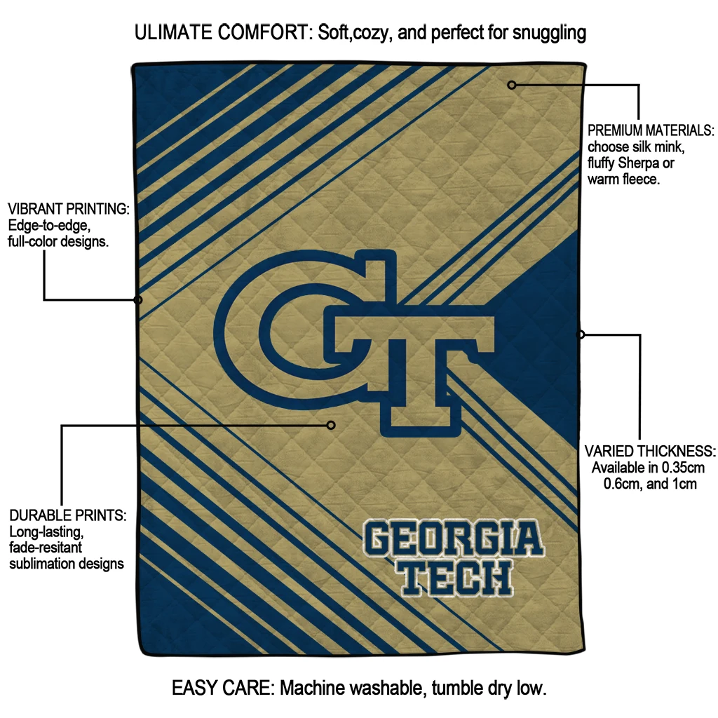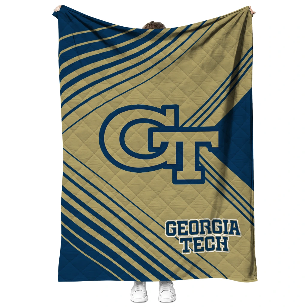 Wrap yourself in warmth and pride with the Georgia Tech Yellow Jackets Arrow Layers Gold Quilt Blanket from the Georgia Tech Yellow Jackets Blankets collection at Yes That Blanket. Made from 100% premium quilting-weight polyester blended with a touch of microfiber, this quilt offers a smooth, soft finish you’ll love. Choose between two quilting styles—Stipple or Diagonal—and enjoy the comfort of a cotton-filled layer inside that adds extra coziness for every season. The border is available in classic black or white, giving your design a clean, timeless edge.