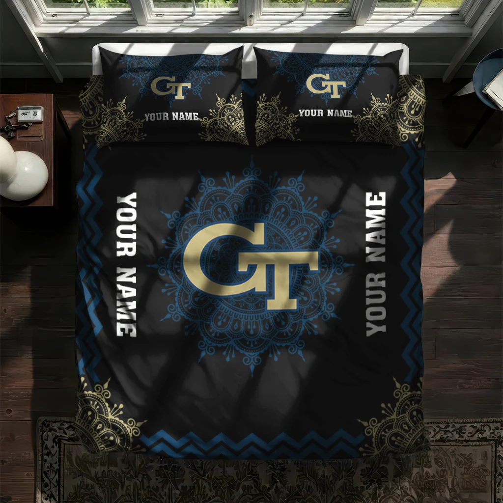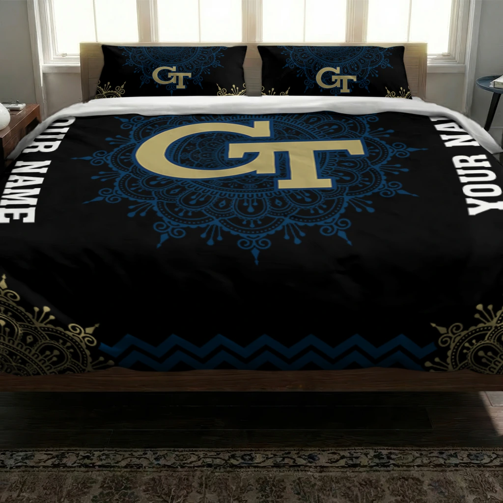 Georgia Tech Yellow Jackets Bedding Set – Personalized Mandala Lacework Black Blue