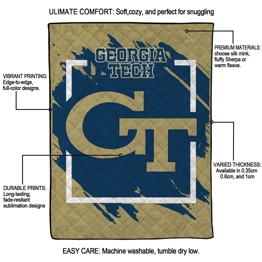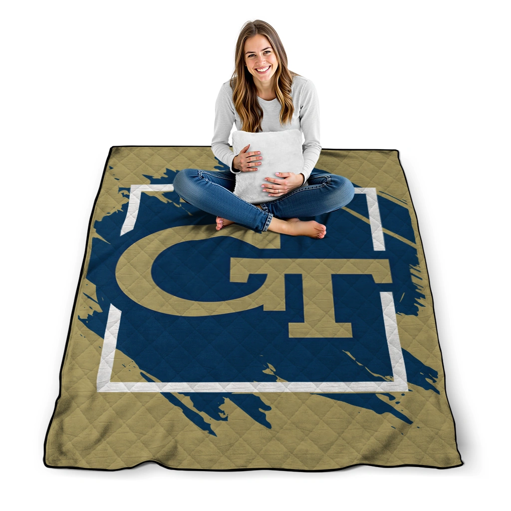 Wrap yourself in warmth and pride with the Georgia Tech Yellow Jackets Block Border Gold Quilt Blanket from the Georgia Tech Yellow Jackets Blankets collection at Yes That Blanket. Made from 100% premium quilting-weight polyester blended with a touch of microfiber, this quilt offers a smooth, soft finish you’ll love. Choose between two quilting styles—Stipple or Diagonal—and enjoy the comfort of a cotton-filled layer inside that adds extra coziness for every season. The border is available in classic black or white, giving your design a clean, timeless edge.