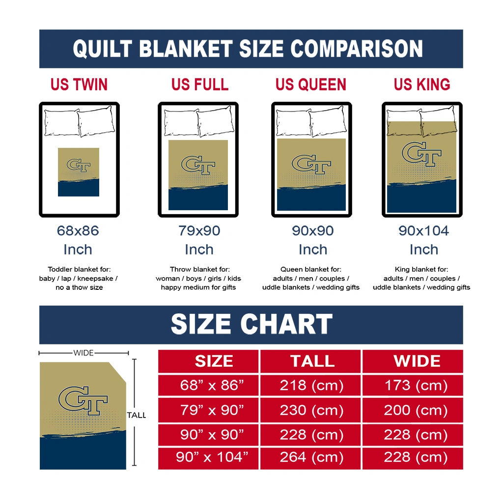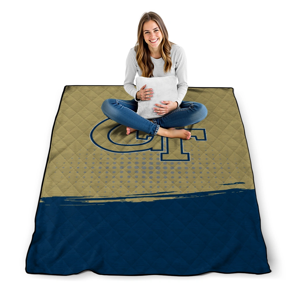 Wrap yourself in warmth and pride with the Georgia Tech Yellow Jackets Dot Illusion Gold Quilt Blanket from the Georgia Tech Yellow Jackets Blankets collection at Yes That Blanket. Made from 100% premium quilting-weight polyester blended with a touch of microfiber, this quilt offers a smooth, soft finish you’ll love. Choose between two quilting styles—Stipple or Diagonal—and enjoy the comfort of a cotton-filled layer inside that adds extra coziness for every season. The border is available in classic black or white, giving your design a clean, timeless edge.