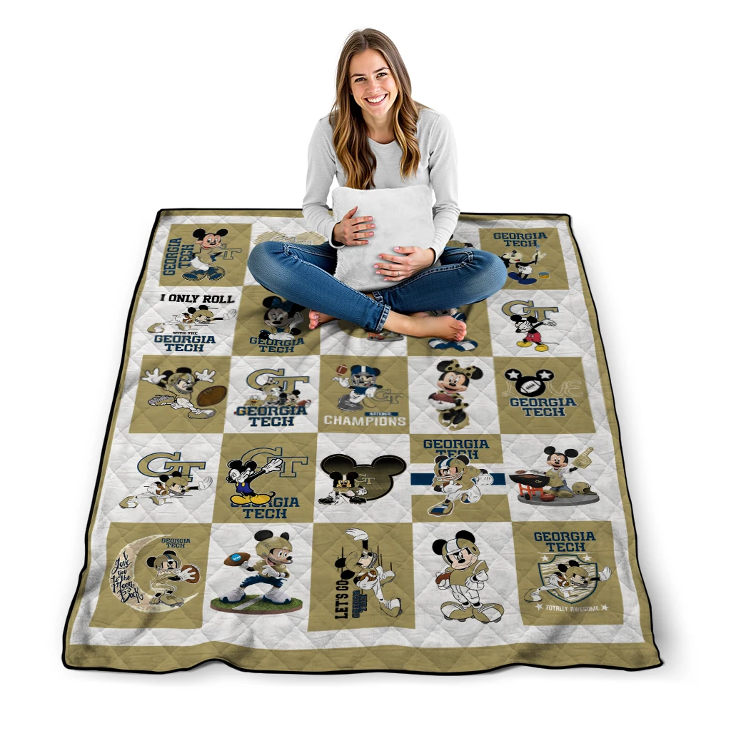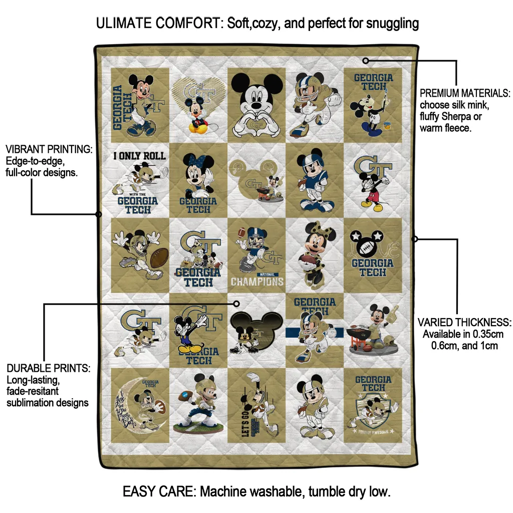 Georgia Tech Yellow Jackets Mickey Mouse Motif Gold White Quilt Blanket
