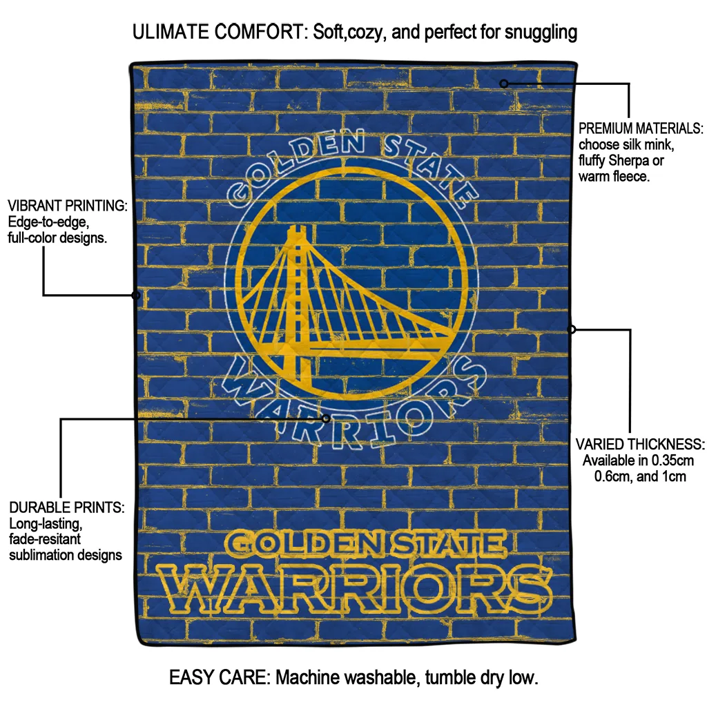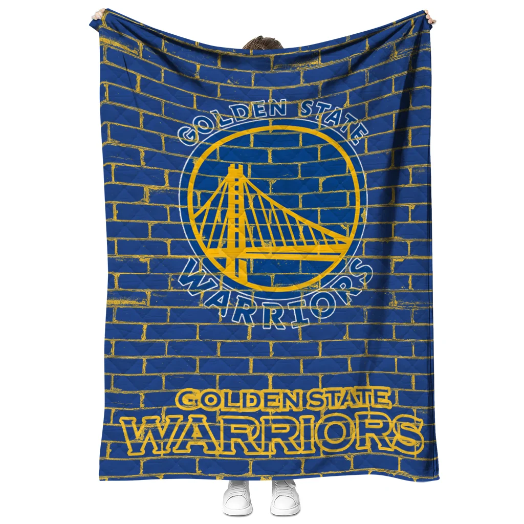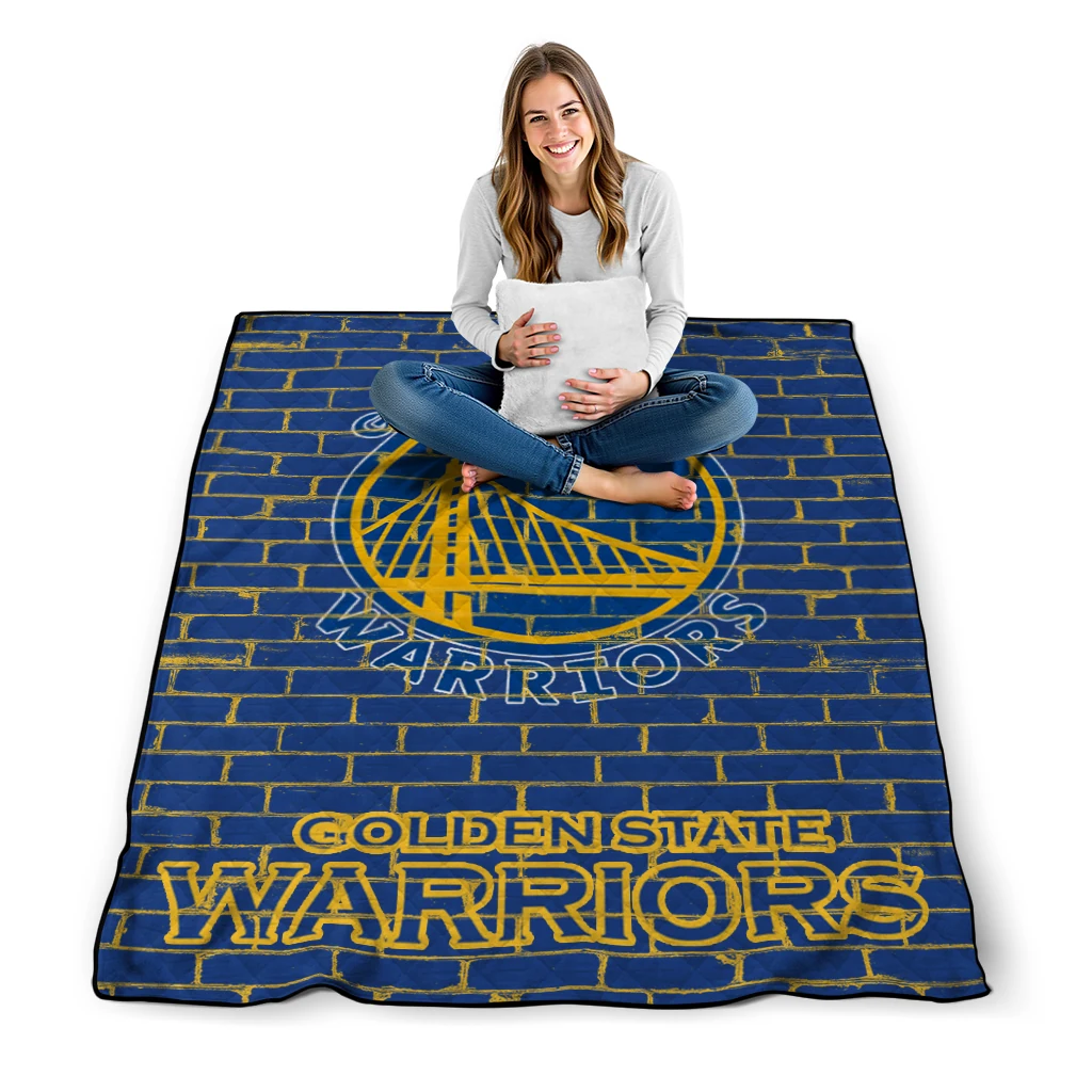 Golden State Warriors Brick Grid Blue Quilt Blanket