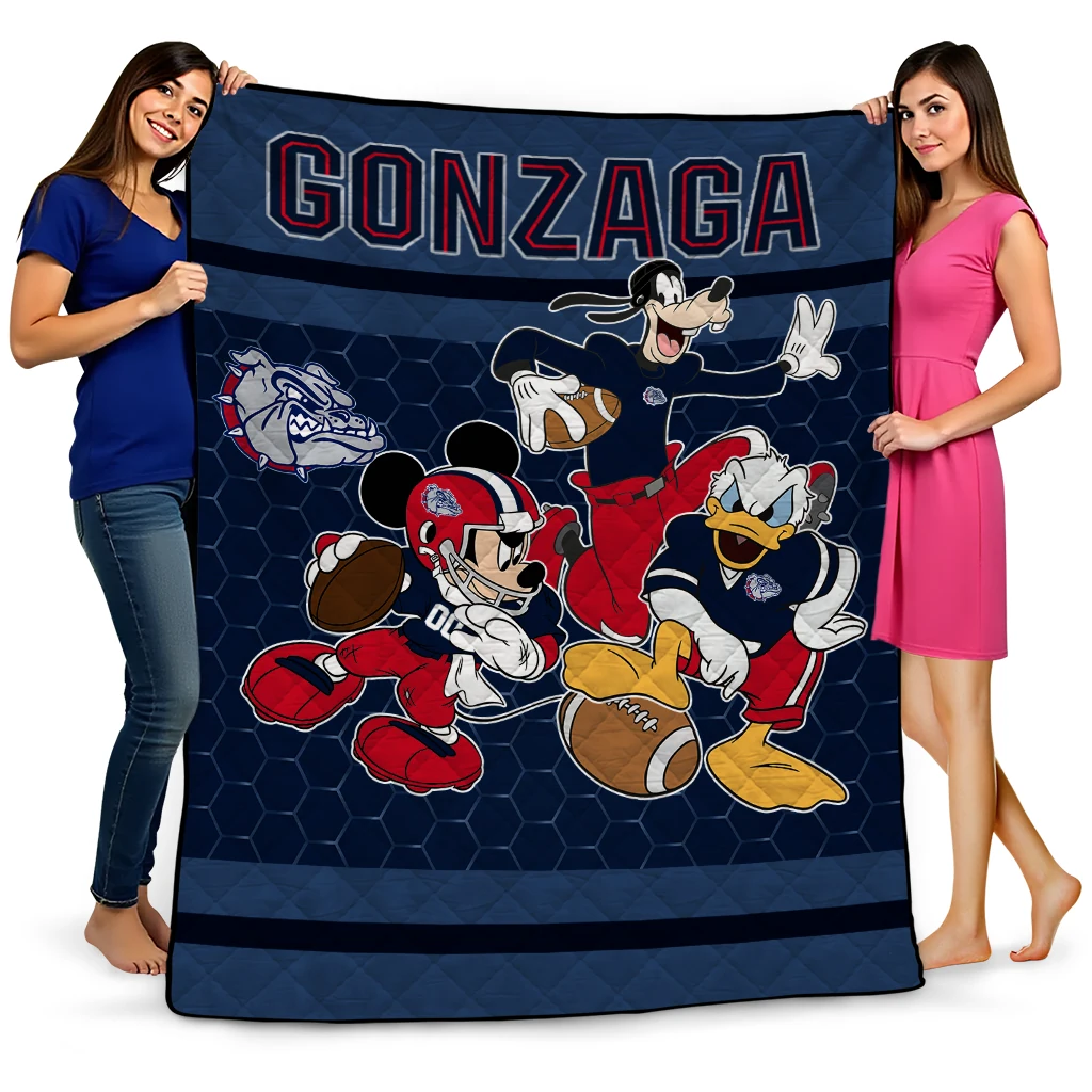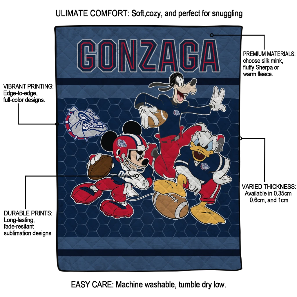 Wrap yourself in warmth and pride with the Gonzaga Bulldogs Disney Football Blue Quilt Blanket from the Gonzaga Bulldogs Blankets collection at Yes That Blanket. Made from 100% premium quilting-weight polyester blended with a touch of microfiber, this quilt offers a smooth, soft finish you’ll love. Choose between two quilting styles—Stipple or Diagonal—and enjoy the comfort of a cotton-filled layer inside that adds extra coziness for every season. The border is available in classic black or white, giving your design a clean, timeless edge.