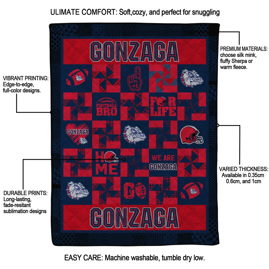 The Gonzaga Bulldogs Helmet Heart Blue Quilt Blanket is more than a blanket—it’s everyday comfort, thoughtfully made. Crafted from premium quilting fabric with a soft microfiber touch, it offers a smooth hand-feel and lasting coziness. Layered quilting with a cotton-filled core provides adaptable warmth across seasons while maintaining a clean, tailored look on your bed or sofa.