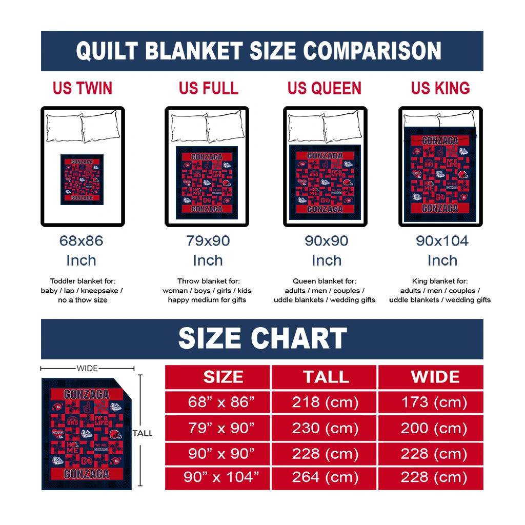 Wrap yourself in warmth and pride with the Gonzaga Bulldogs Helmet Heart Blue Quilt Blanket from the Gonzaga Bulldogs Blankets collection at Yes That Blanket. Made from 100% premium quilting-weight polyester blended with a touch of microfiber, this quilt offers a smooth, soft finish you’ll love. Choose between two quilting styles—Stipple or Diagonal—and enjoy the comfort of a cotton-filled layer inside that adds extra coziness for every season. The border is available in classic black or white, giving your design a clean, timeless edge.