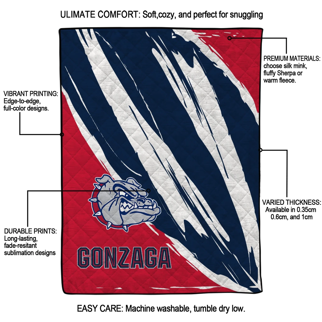 The Gonzaga Bulldogs Stroke Art Blue White Quilt Blanket is more than a blanket—it’s everyday comfort, thoughtfully made. Crafted from premium quilting fabric with a soft microfiber touch, it offers a smooth hand-feel and lasting coziness. Layered quilting with a cotton-filled core provides adaptable warmth across seasons while maintaining a clean, tailored look on your bed or sofa.