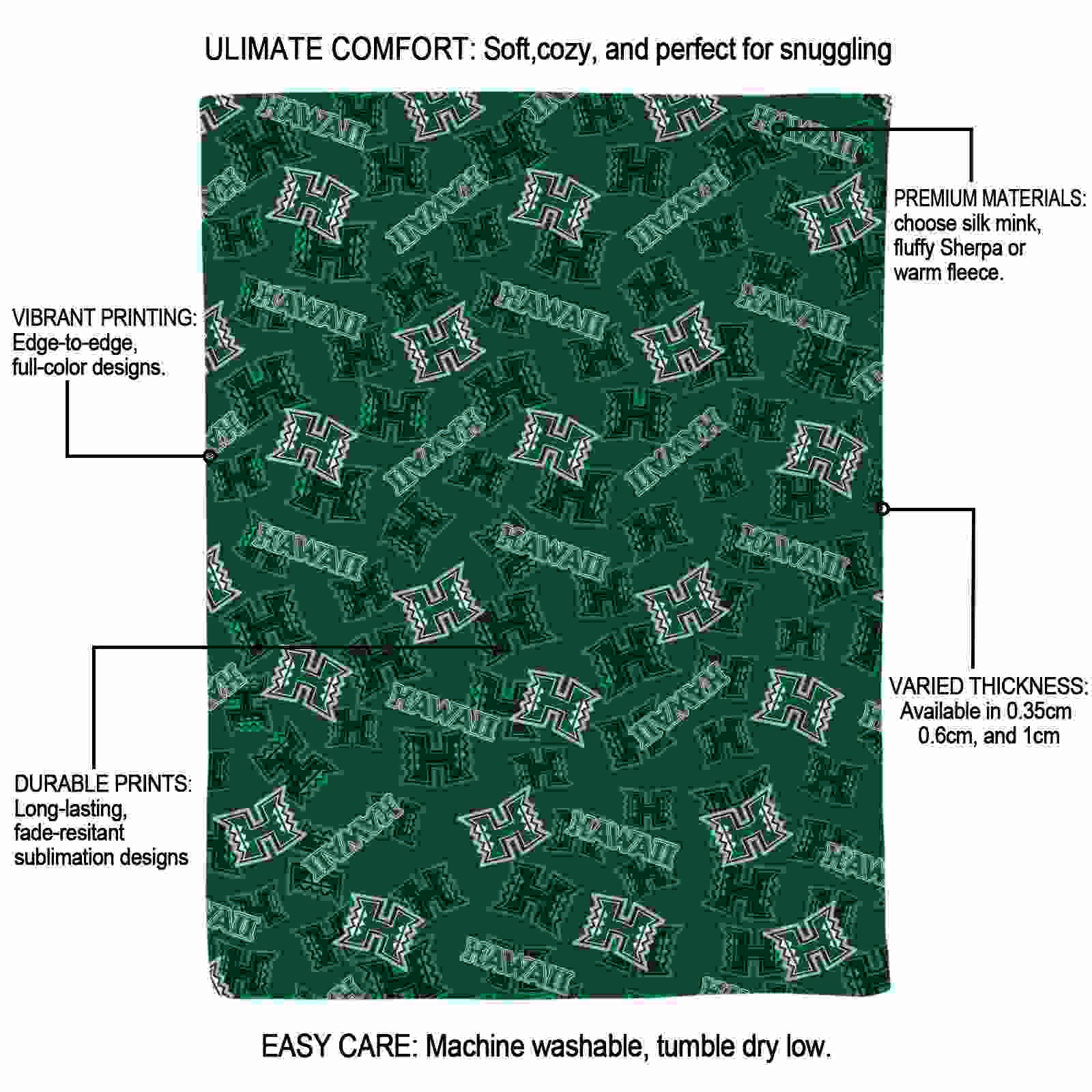 Without a doubt, the Hawaii Rainbow Warriors Diehard Fans Green Blanket from Hawaii Rainbow Warriors Blankets collection is offering true fans a chance to showcase passion in a cool way. Personalize it with your favorite team’s logo or a meaningful name to make it uniquely yours. Isn’t that great? The full-color print ensures vibrant, edge-to-edge designs, bringing your sports enthusiasm to life!