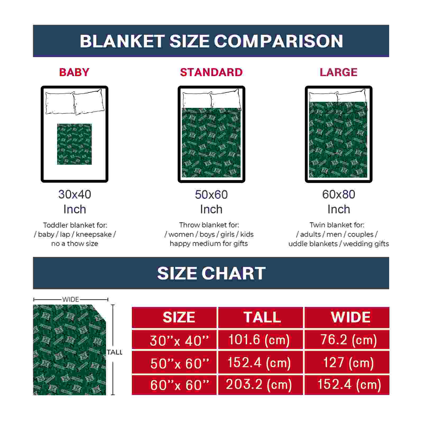 Still, wait, there’s more! Available in three options to suit every fan, we offer varying thickness and feel, from the soft 0.6 cm fleece to the lightweight 0.35 cm and the luxurious 1 cm mink sherpa. Extra point: To maintain its nice look and softness, take it easy! Just simply machine wash it separately in cold water and tumble dry on low, avoiding heat pressing, ironing, or dry cleaning!