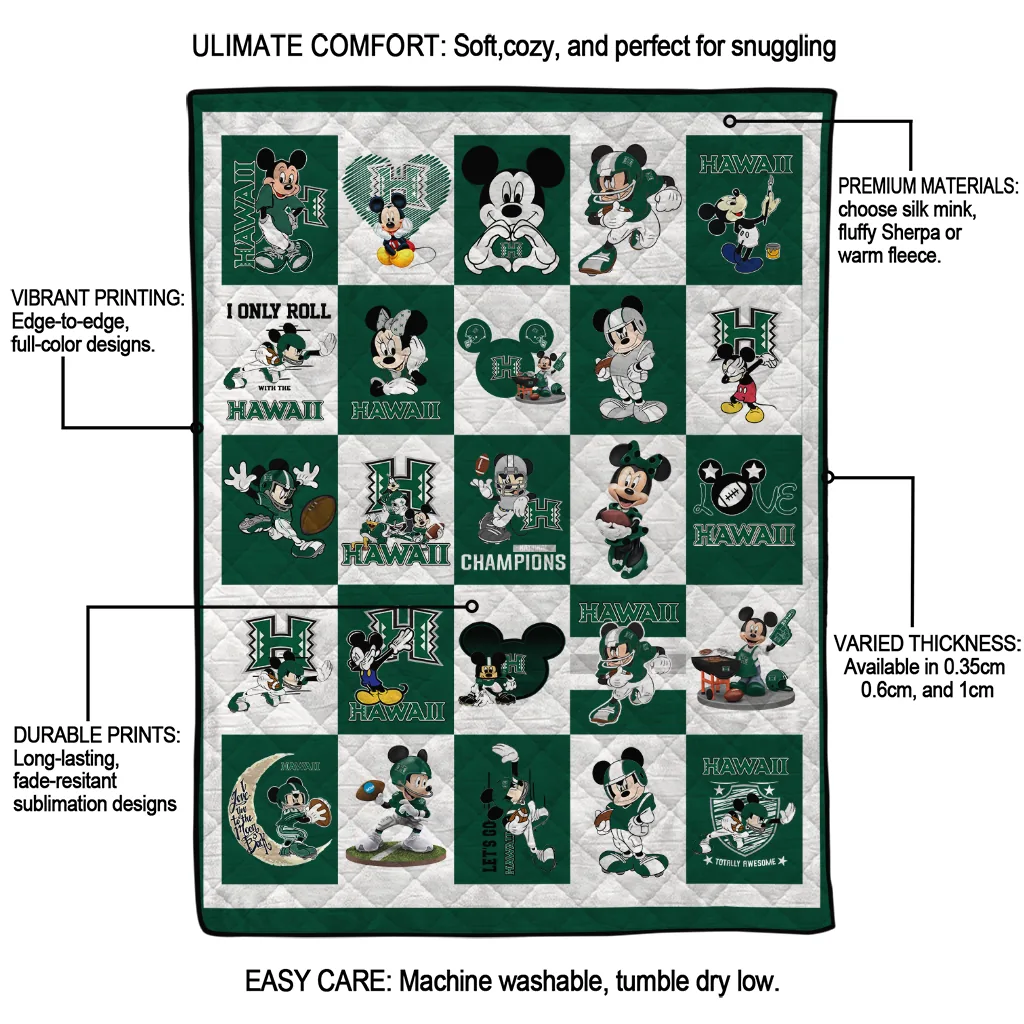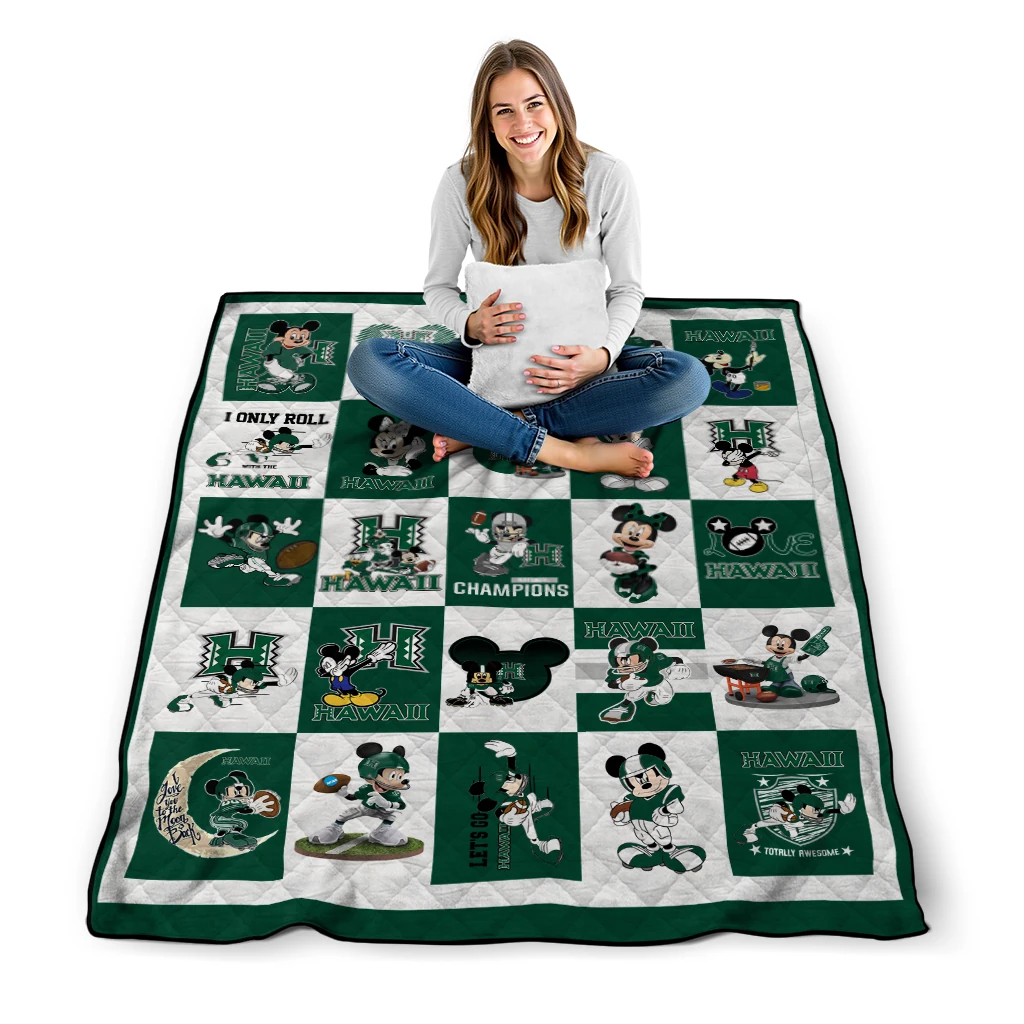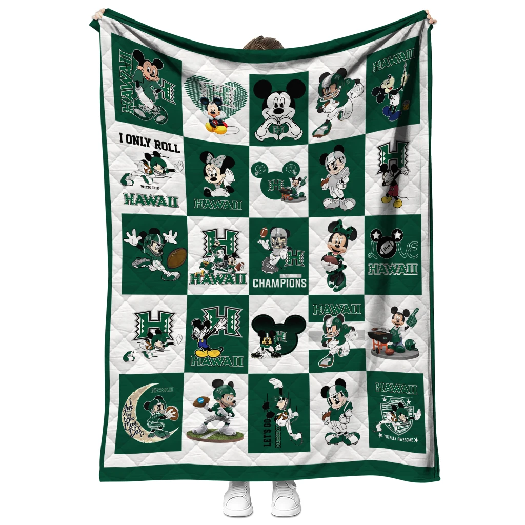 Hawaii Rainbow Warriors Mickey Mouse Motif Green White Quilt Blanket